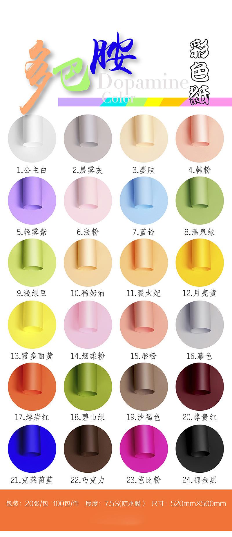 Papel de Envoltura de Color Dopamina Película Impermeable Papel de Envoltura Artístico Engrosado Florería Paquete de Ramo Papel para Flores Venta al por Mayor de Flores