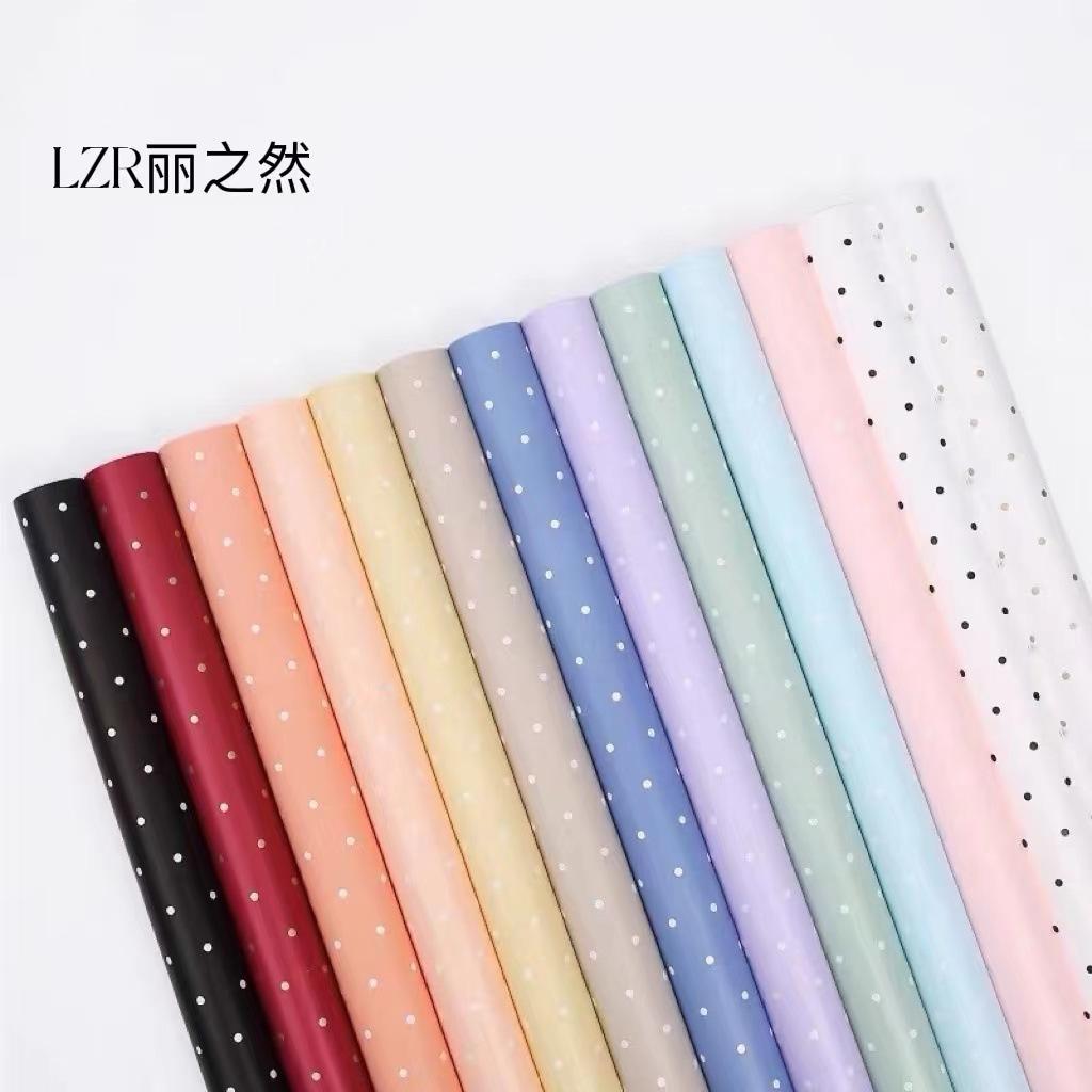 Nuevo papel de envoltura de flores Qixi impermeable de doble cara con lunares papel Ou Ya al por mayor en stock