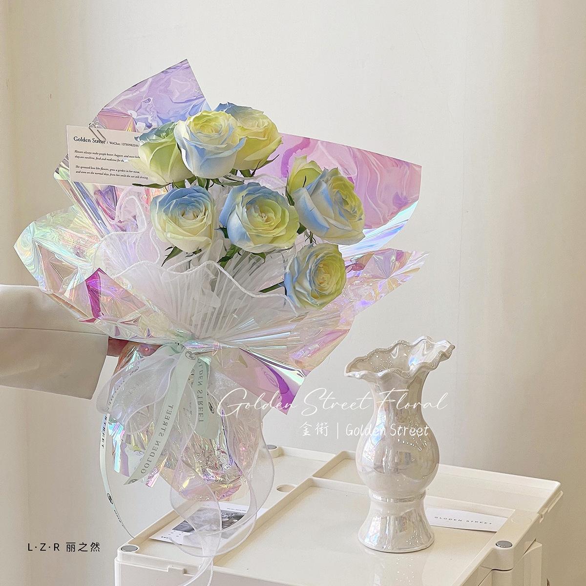 Papel para envolver flores, película de fantasía, película arcoíris, celofán, papel de gelatina, láser impermeable, papel para envolver ramos de flores Tanabata