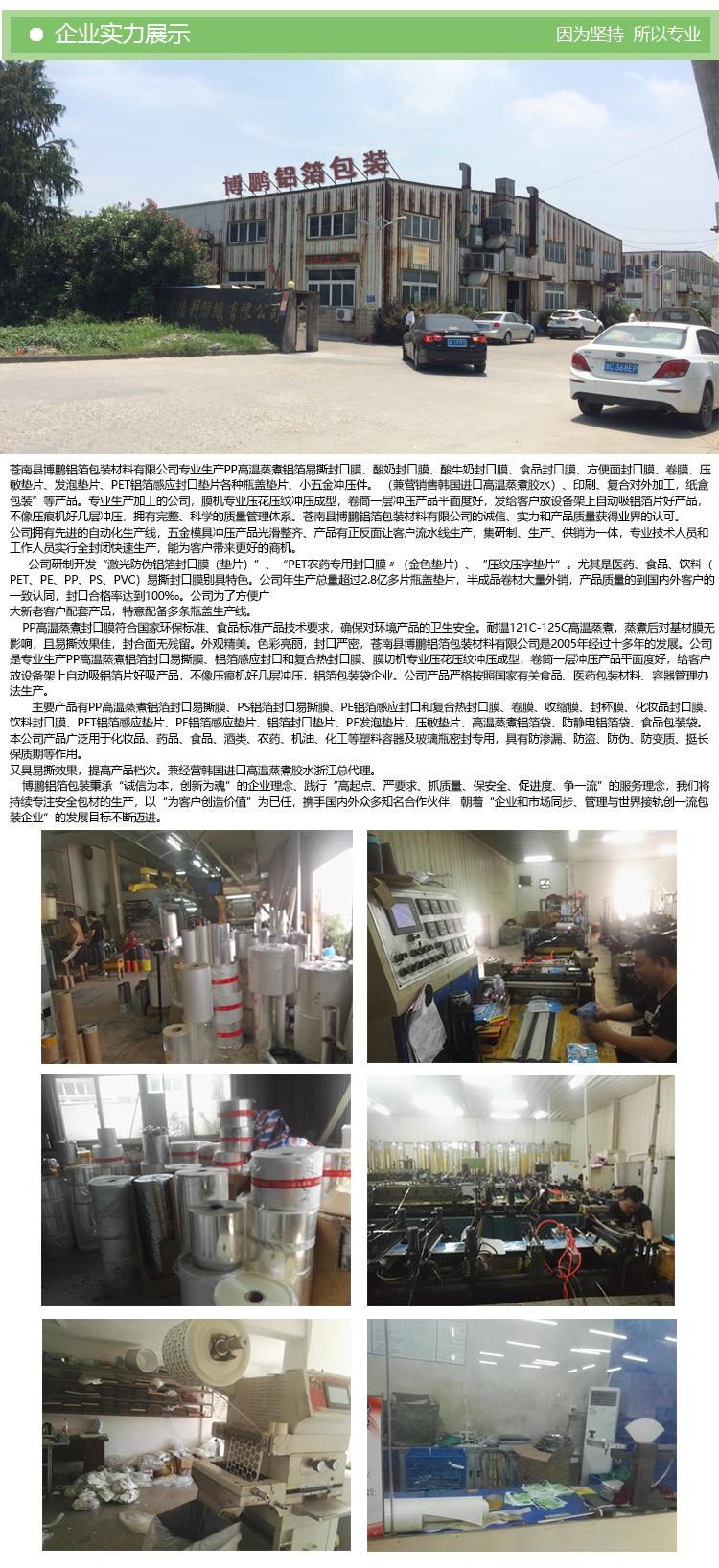 Cangnan Bopeng Aluminum Foil Packaging Material Co., Ltd., fundada en 2005, se encuentra en la ciudad de Wenzhou, provincia de Zhejiang. Es una empresa farmacéutica que fabrica láminas de aluminio PTP y láminas dobles farmacéuticas.
