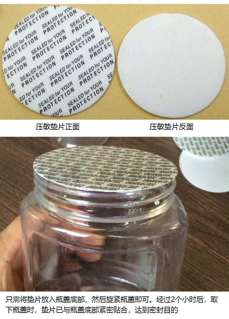 【Material】Adhesivo sensible a la presión, junta de sellado de espuma de PS 【Categoría】Empaque sensible a la presión 【Función】Sellado y fresco [Tipos aplicables] Botellas de vidrio, botellas de metal, botellas de plástico (aplicable a sólidos, alimentos secos, medicamentos, etc. en la botella, pero no a líquidos) [Tamaño opcional] Se pueden personalizar varios tamaños según las necesidades del comprador. |