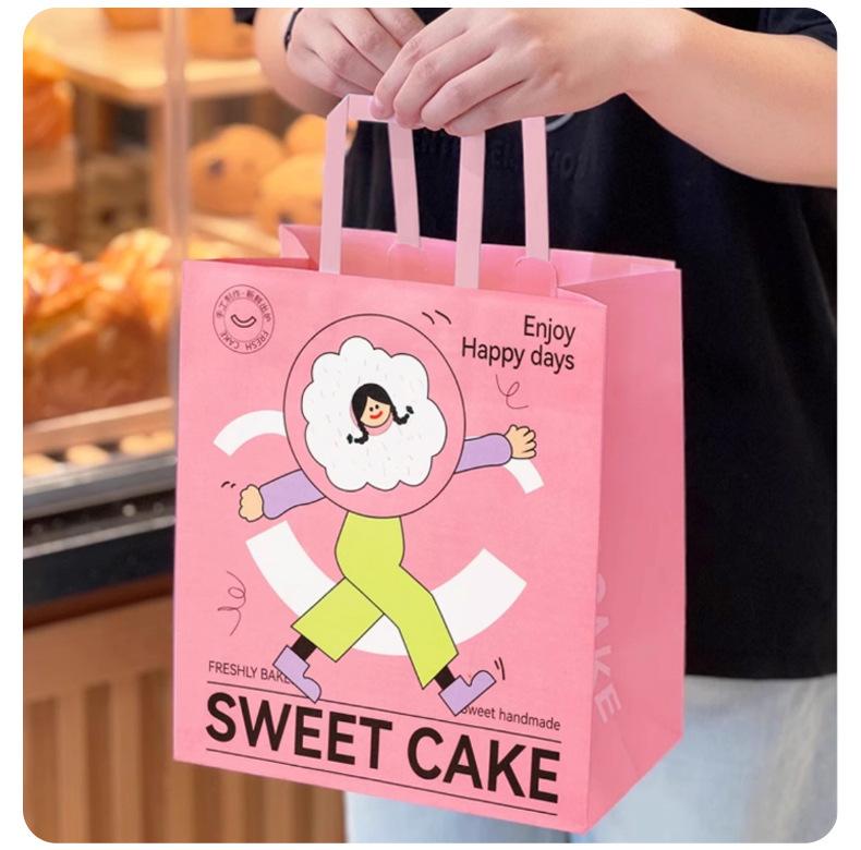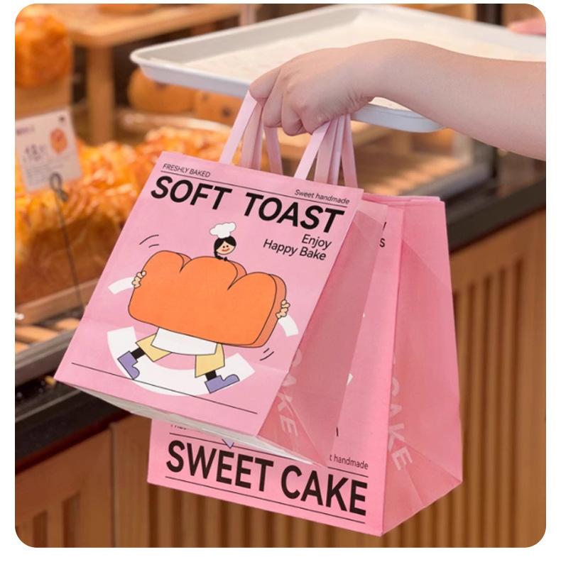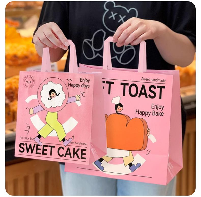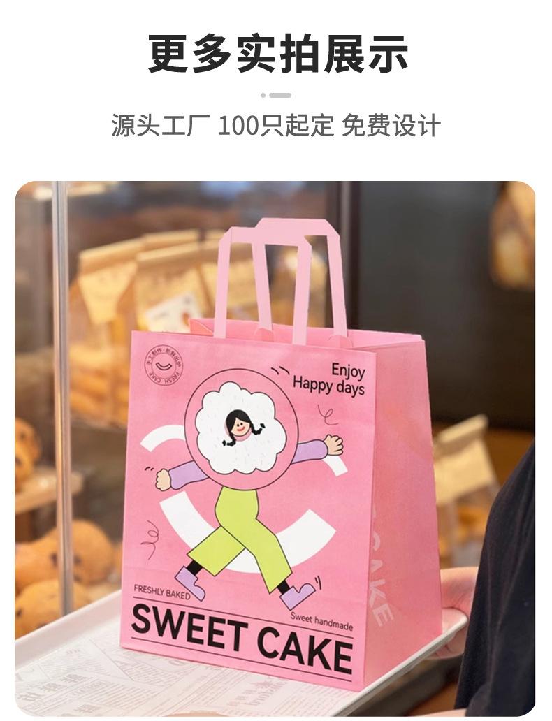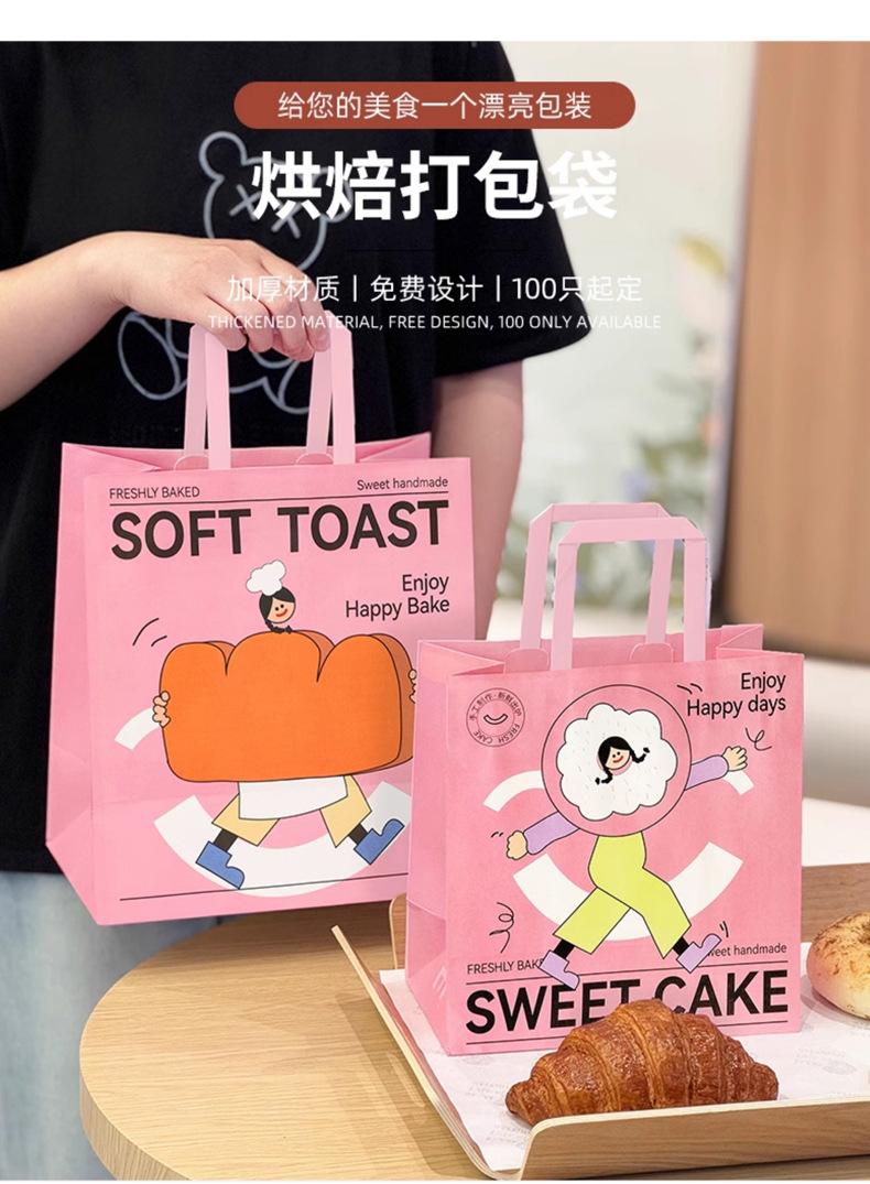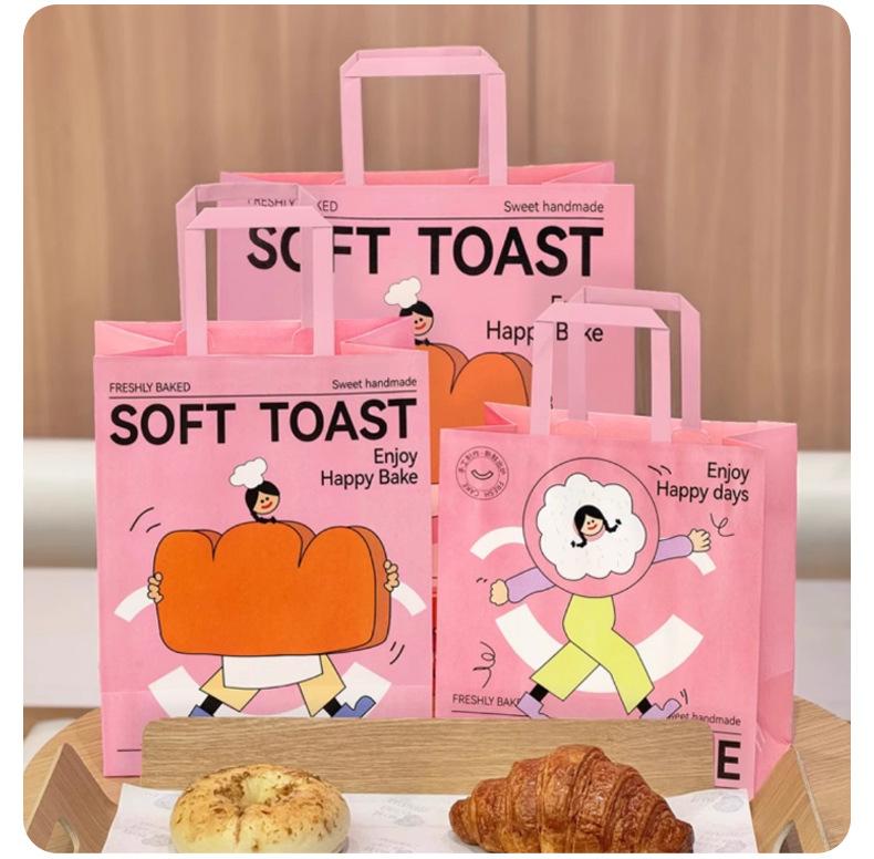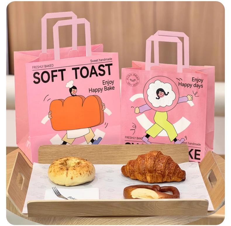 Bolsa de papel kraft rosa para empaquetar pan, postres, repostería, pastelería, para llevar, personalizable
