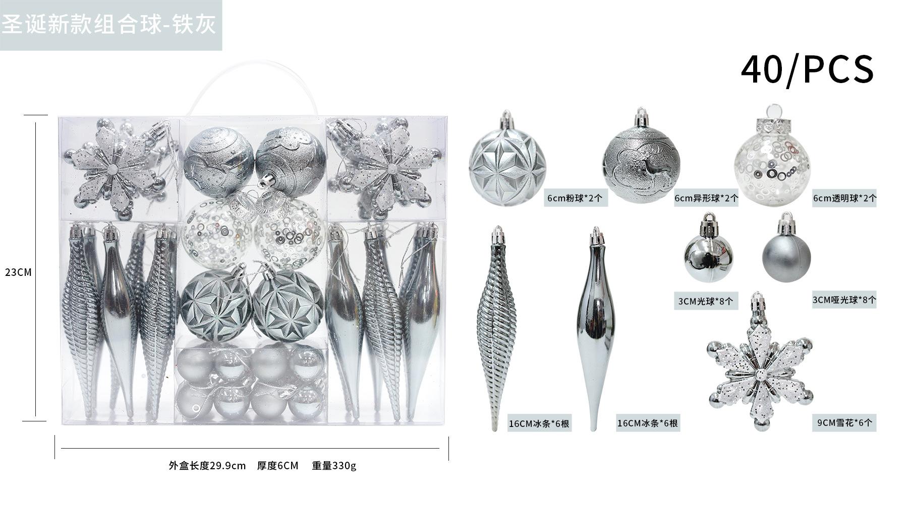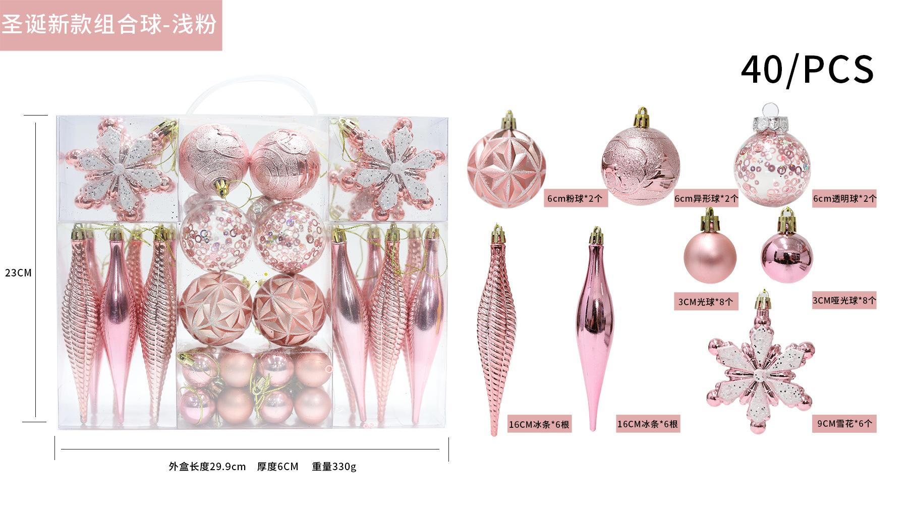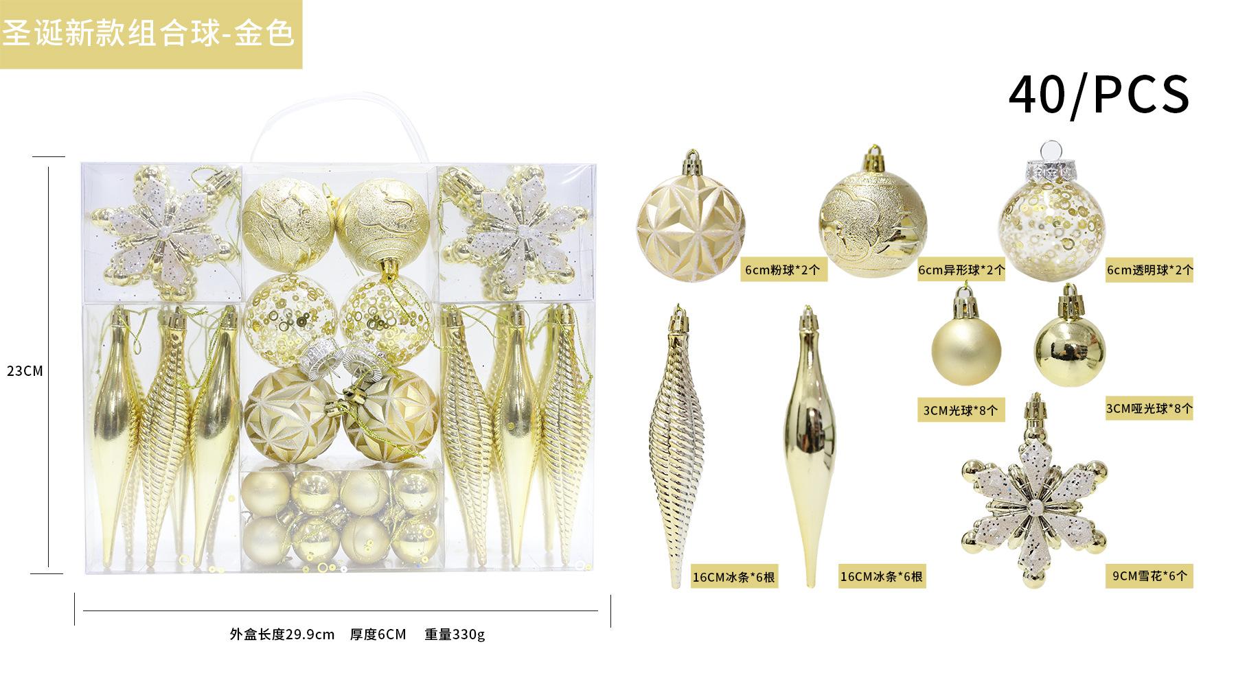 Nueva decoración de bolas navideñas transfronterizas, suministros para decoración de árboles de Navidad, bolas de galvanoplastia, combinación de bolas de pintura navideña, 40 piezas