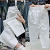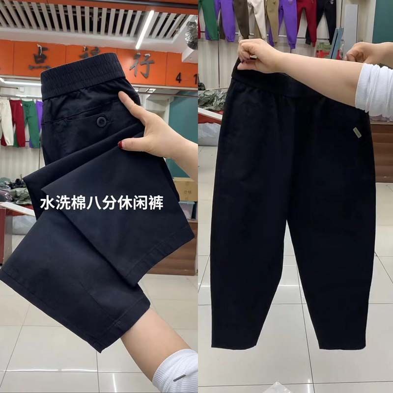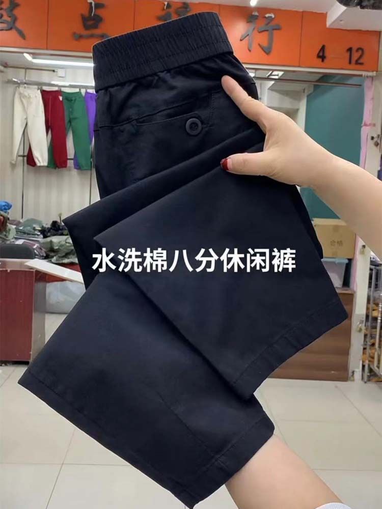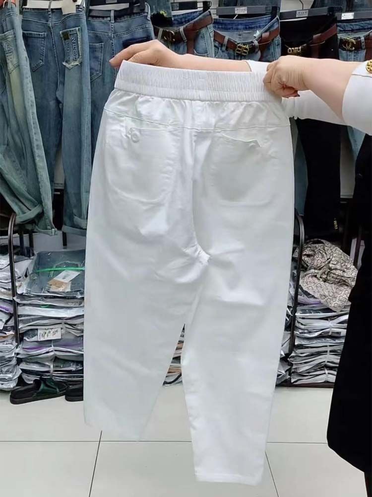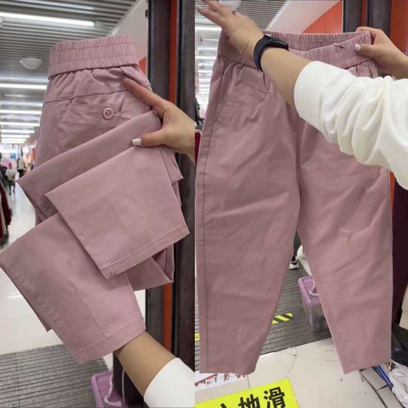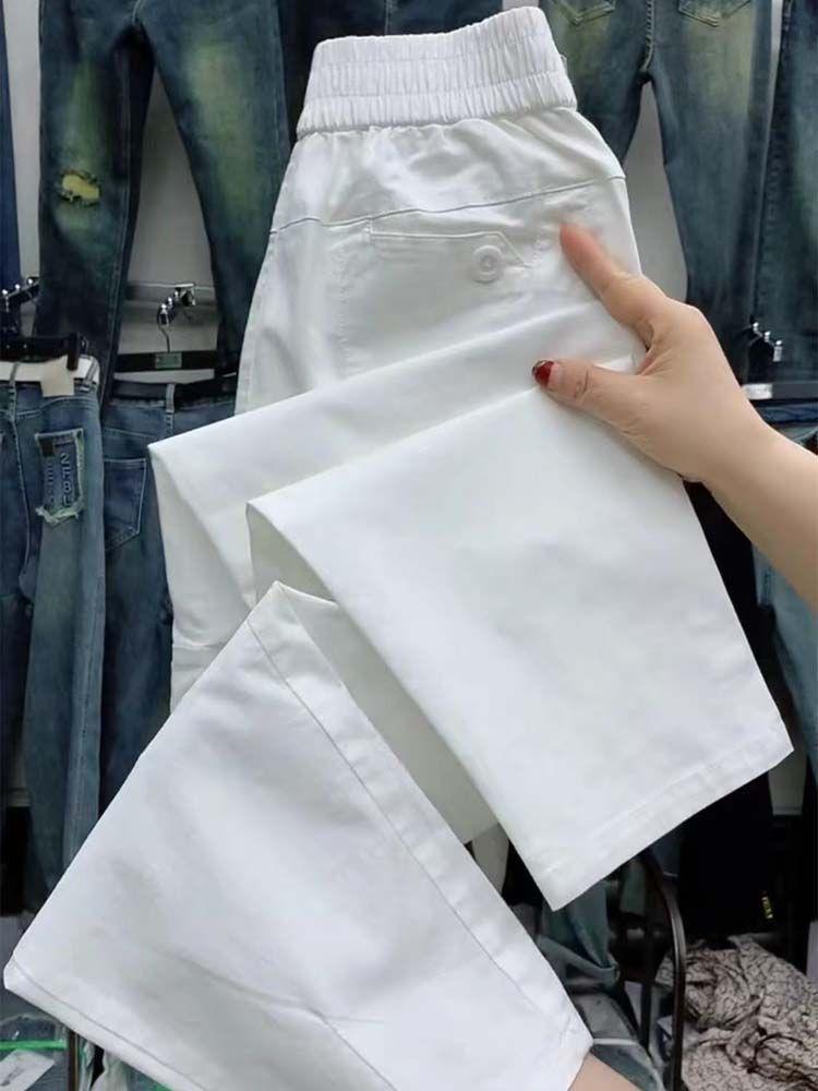Pantalones casuales de color liso que combinan con todo para mujer, nuevos pantalones de verano de algodón lavado, de cintura alta, adelgazantes, pantalones holgados y elásticos Hallen