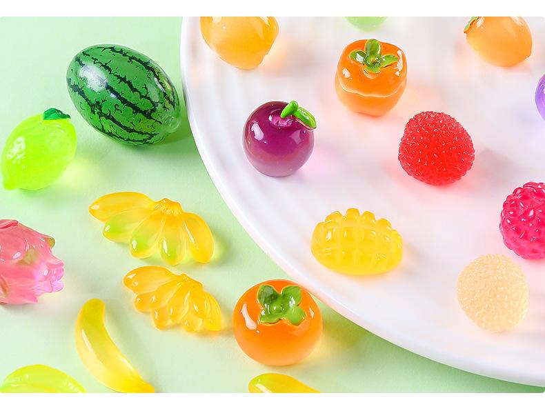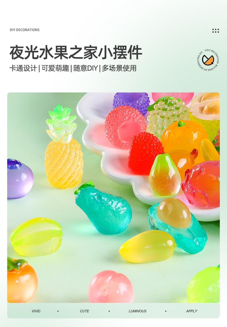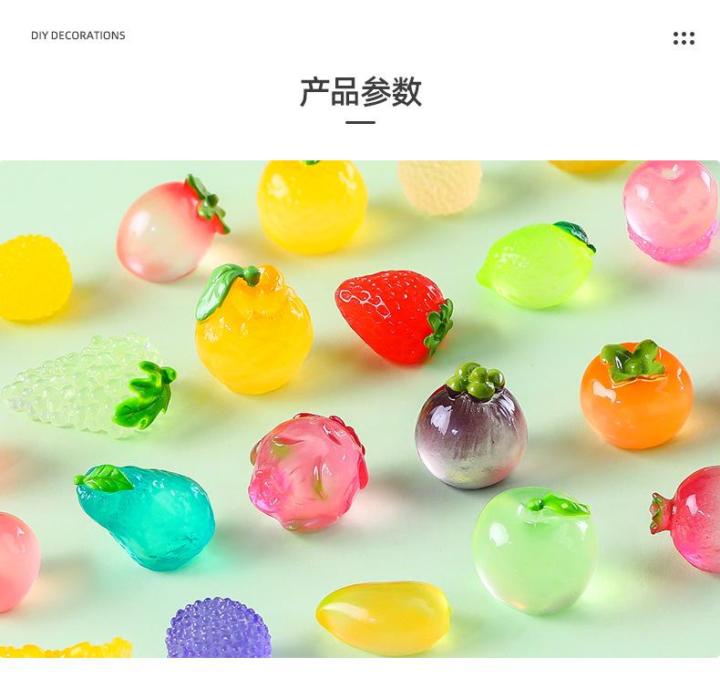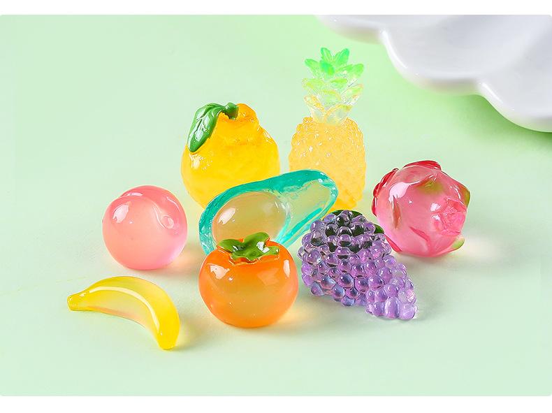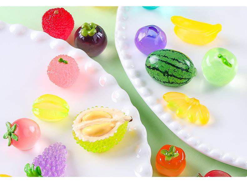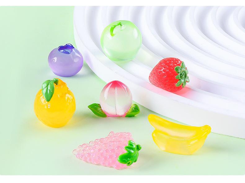 Comida de simulación creativa, juego de frutas pequeñas luminosas, adorables decoraciones de bricolaje, bolsa ciega abierta, accesorios, mini adornos pequeños en miniatura