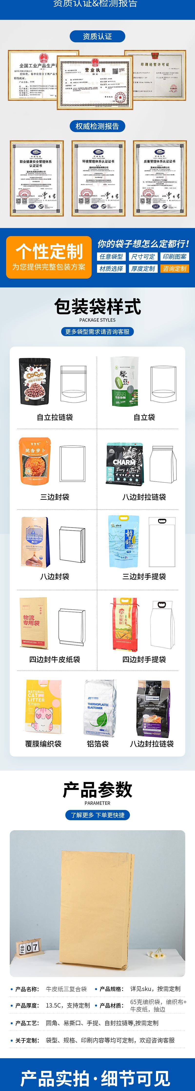 Fabricantes de bolsas tricompuestas de papel kraft, bolsa tejida química de papel kraft para alimento, express, a prueba de humedad, engrosada, impermeable, impresión