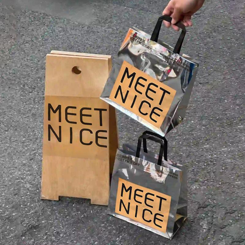 Internet Rojo Espejo Horneado Postre Pan Plata Brillante Tarjeta Bolso Embalaje Pastelería Embalaje Bolsa de Papel Logotipo Impresión Fija