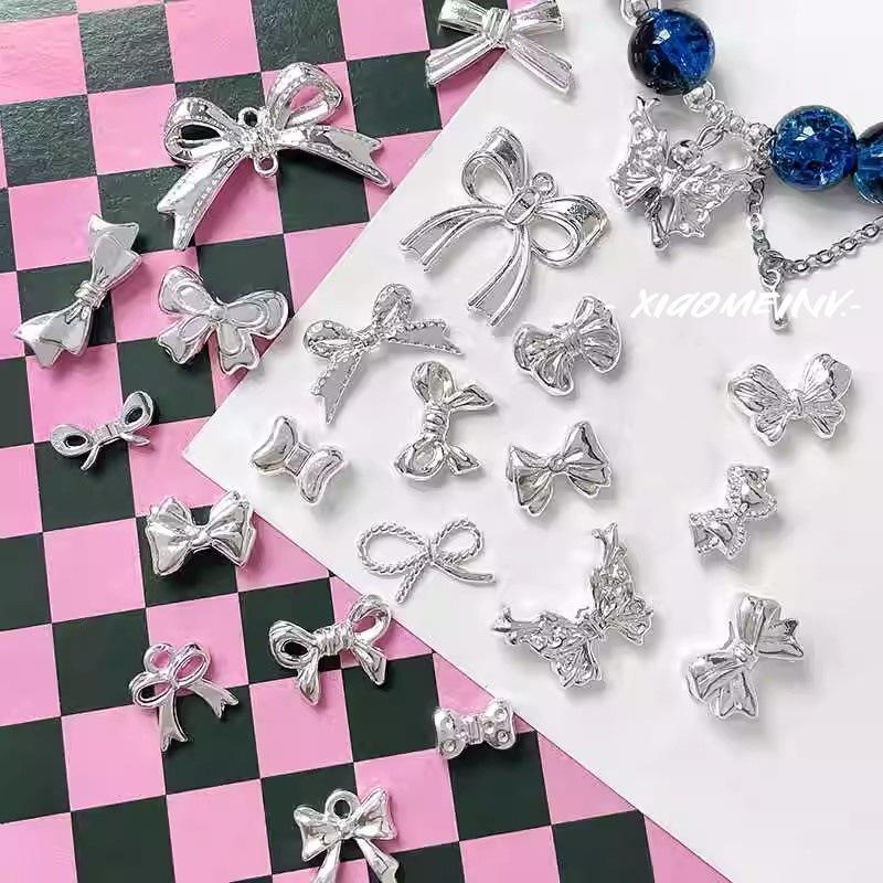 Colgante de cuentas de mariposa huecas con lazo de aleación de plata, hecho a mano, pulsera, collar, pendientes, accesorios de cuentas