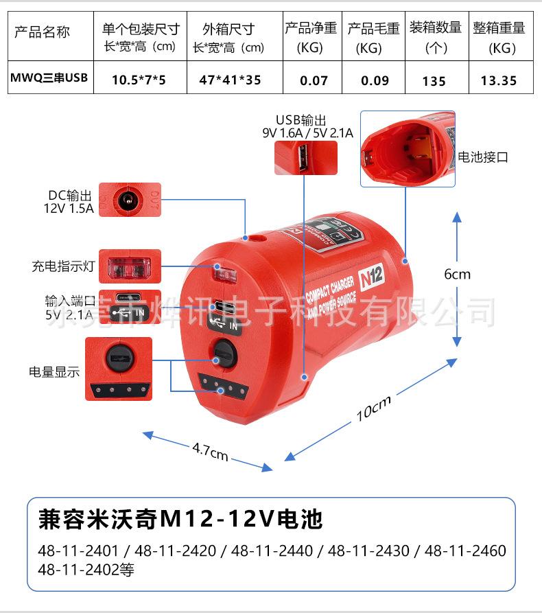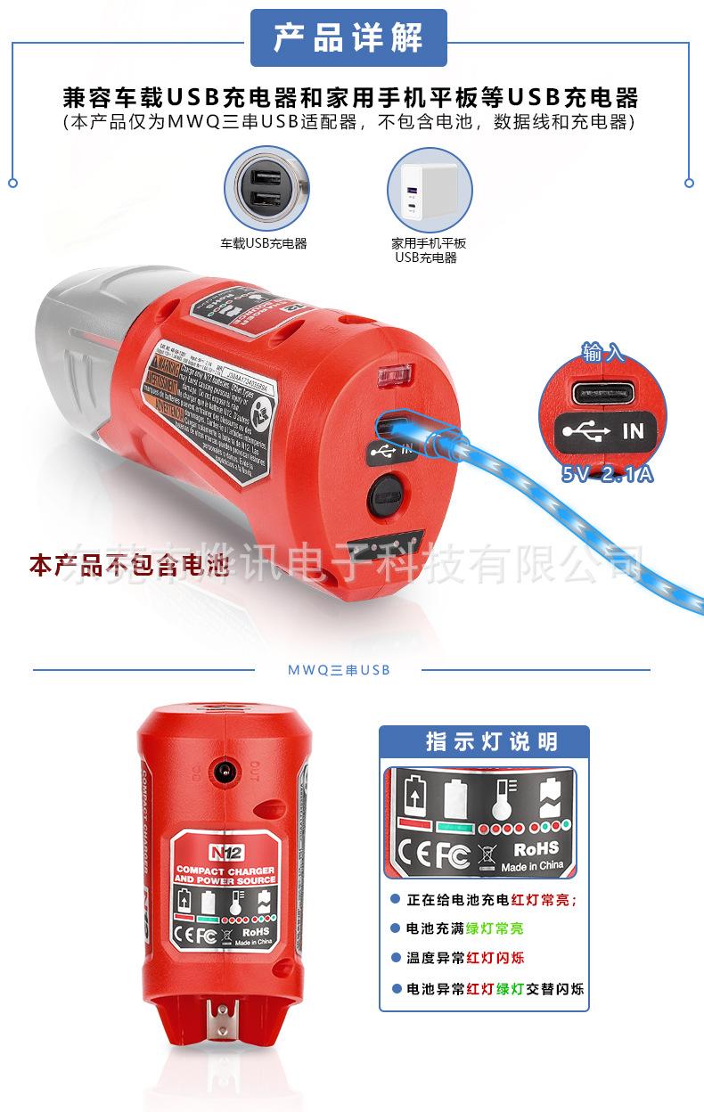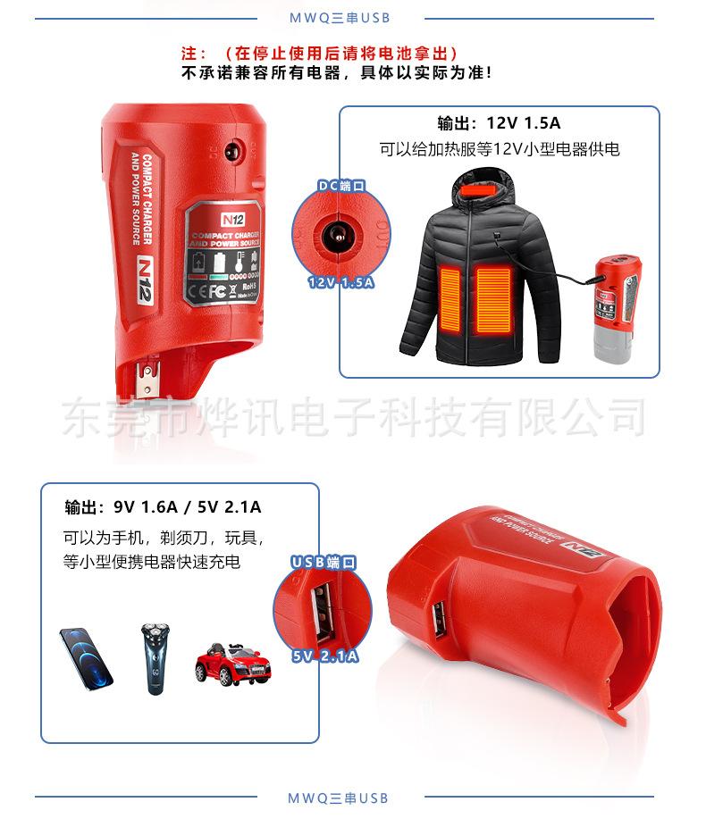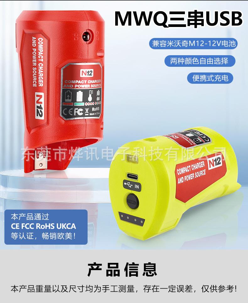 Convertidor N12 para reemplazar la batería de litio Mivoch de 10,8-12 V, herramienta eléctrica, cabezal de conversión USB.