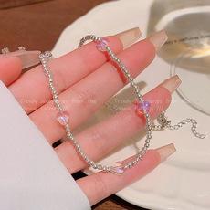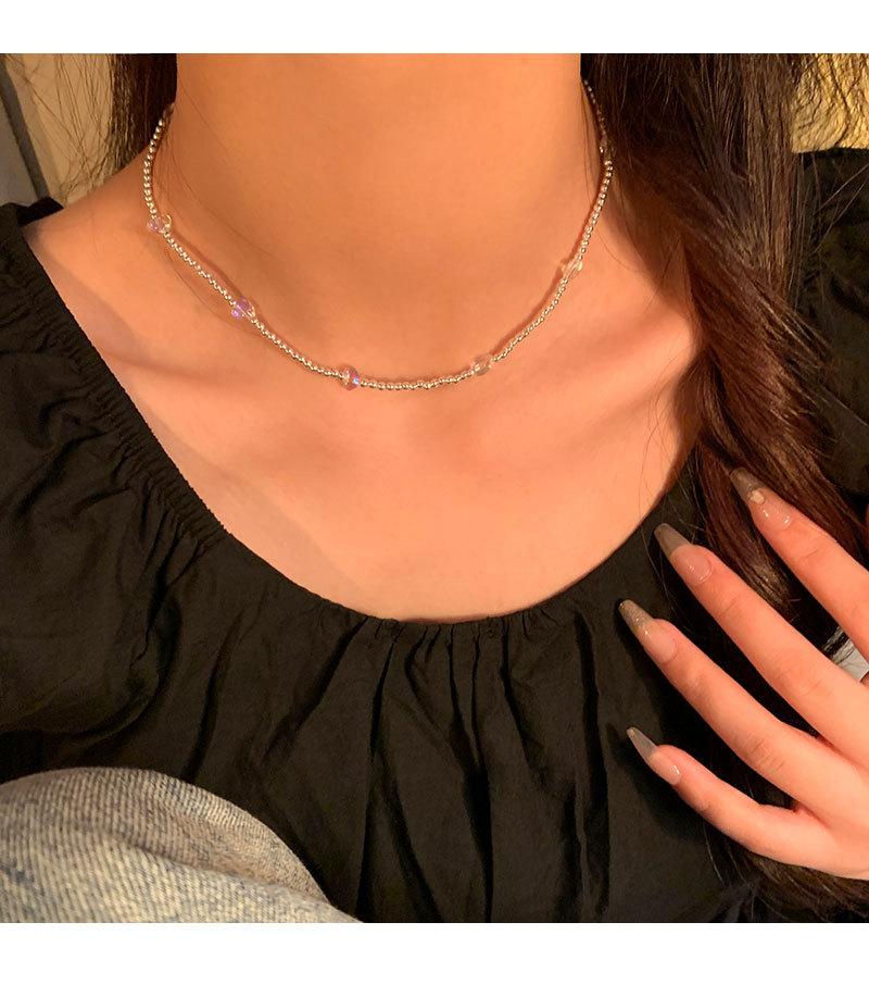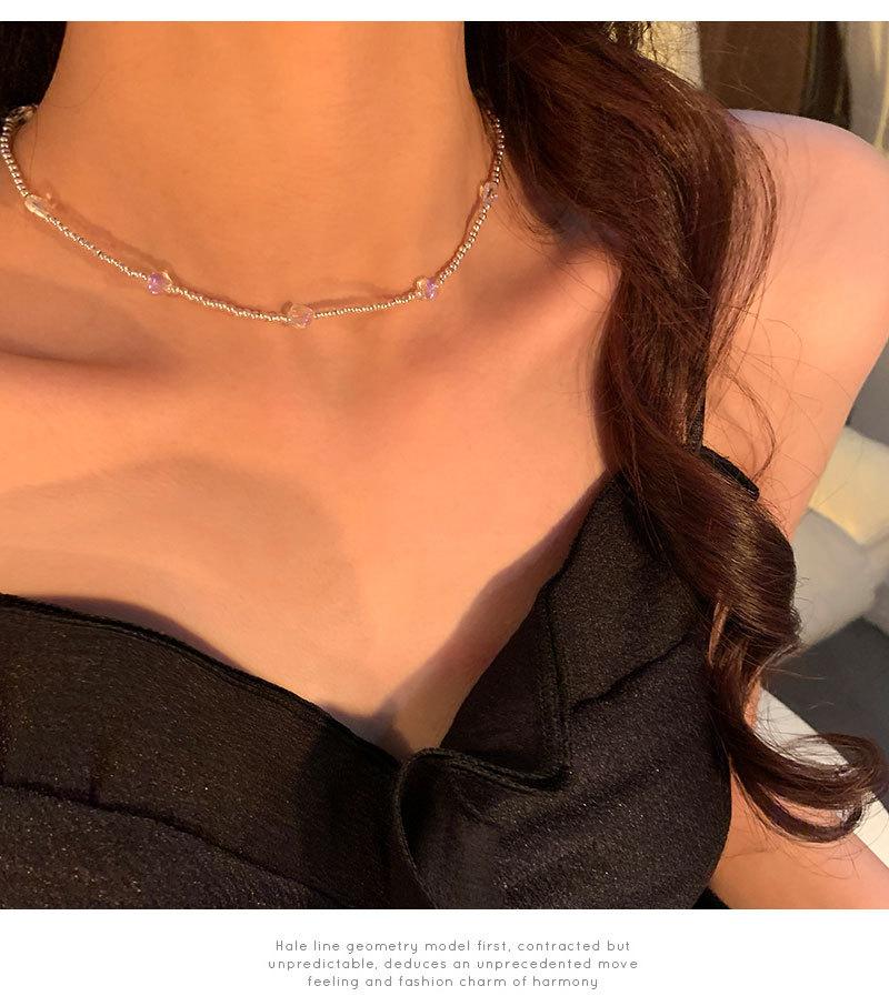 Nuevo collar morado de cuentas para mujer 2024, dulce y genial, versátil, colgante de mariposa y amor, cadena para clavícula, accesorios populares