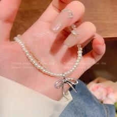 Collar coreano de doble capa con lazo de perlas para mujer, retro, nicho, versátil, cadena para clavícula de chica hot, nuevos accesorios de temperamento
