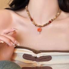 Nuevo collar de perlas con flor rosa de estilo chino para mujer, temperamento retro de alta gama, cadena de clavícula de madera, versátiles accesorios nuevos