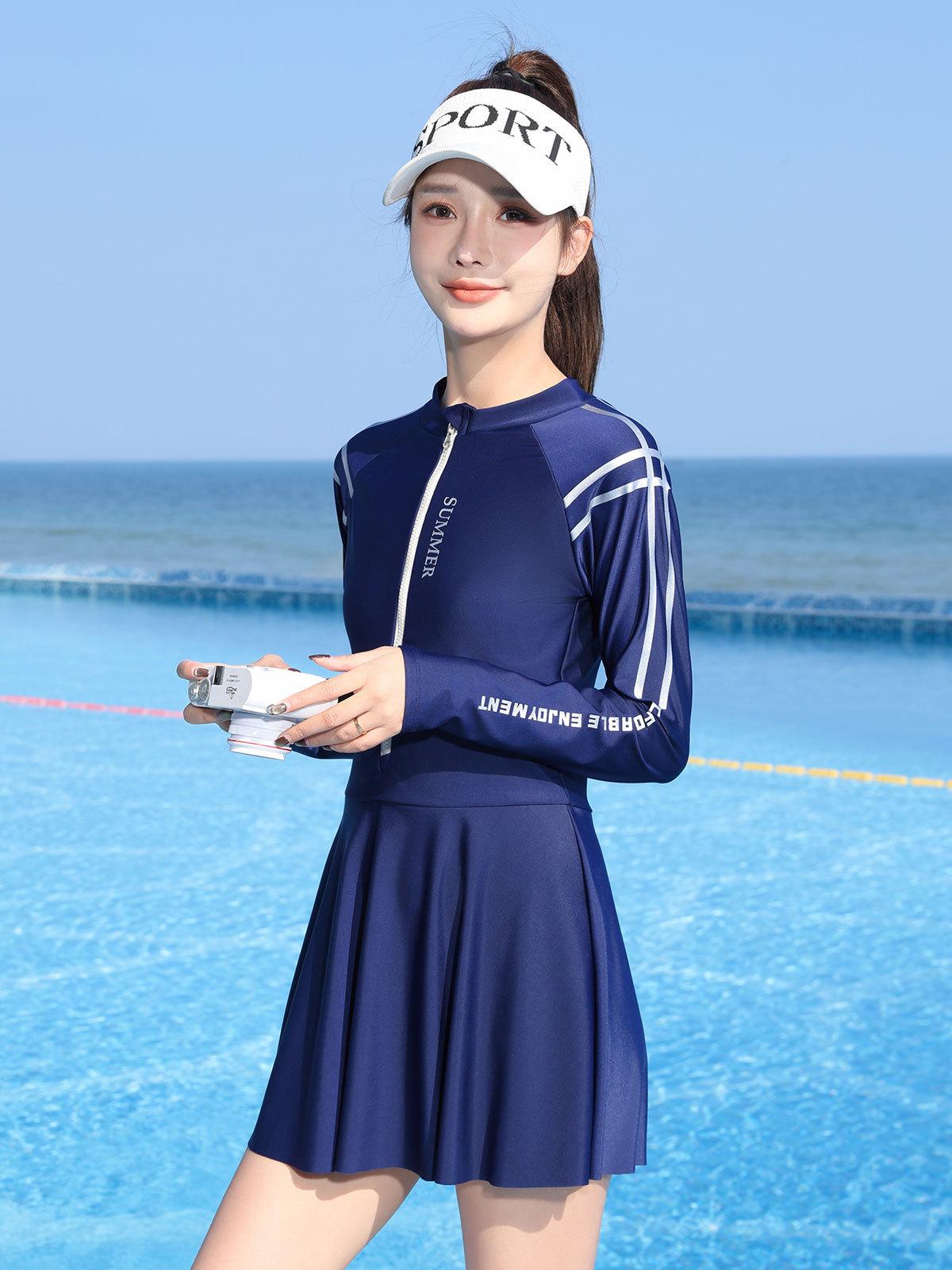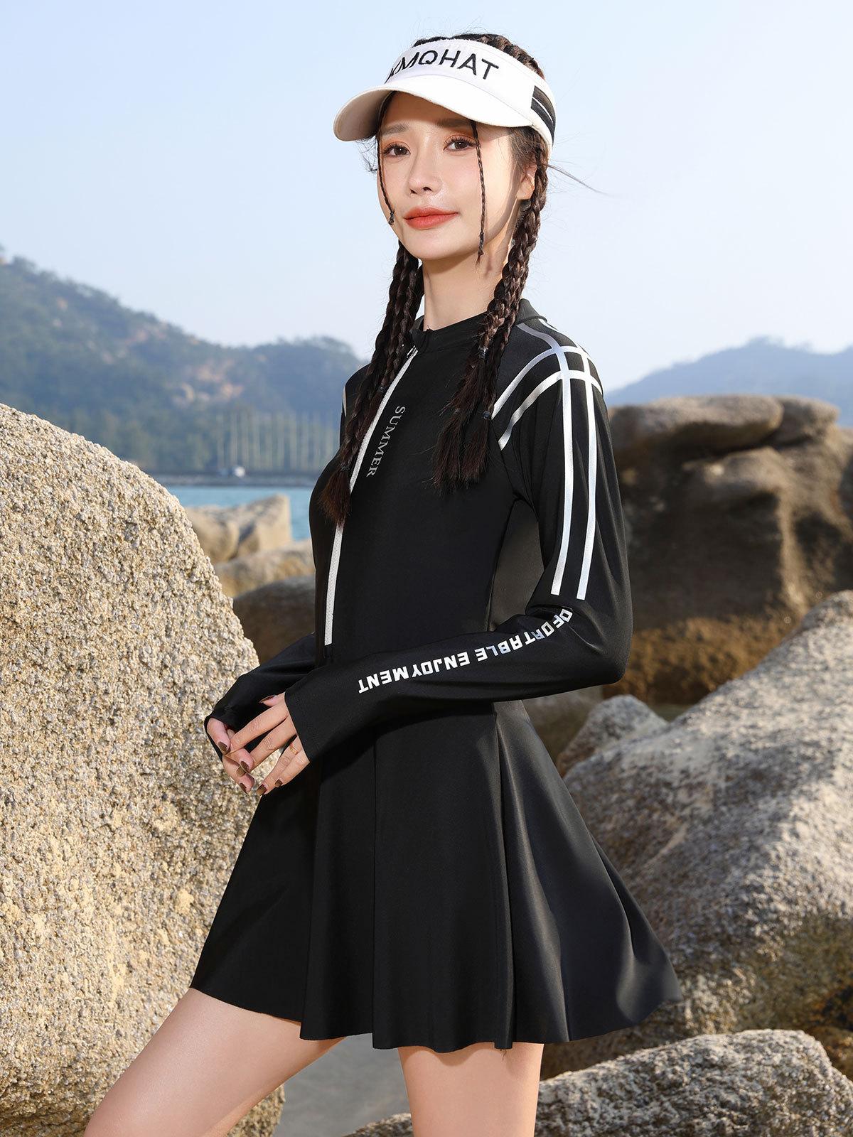 Traje de baño de una pieza HURUN para aguas termales, para mujer, para surf, buceo, manga larga, protector solar, corte ajustado y conservador.