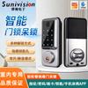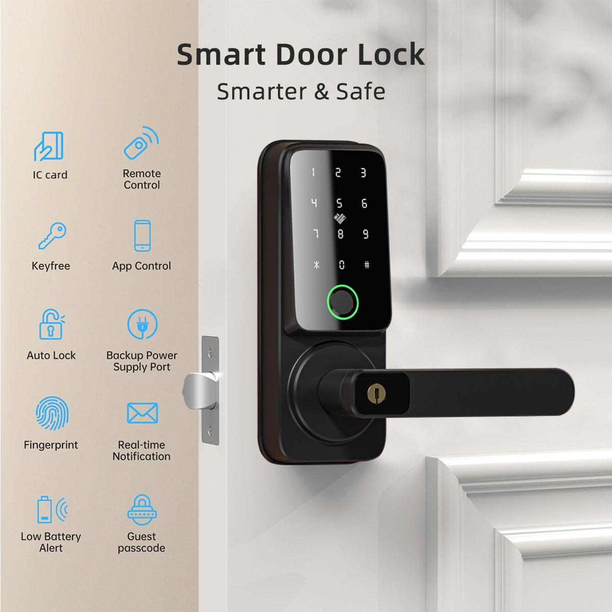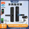 Cerradura de estilo americano para el hogar, con huella dactilar, contraseña, tarjeta, llave, cerradura inteligente, para oficina, habitación de alquiler, cerradura con grafiti de madera
