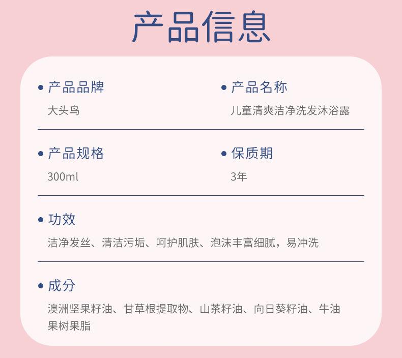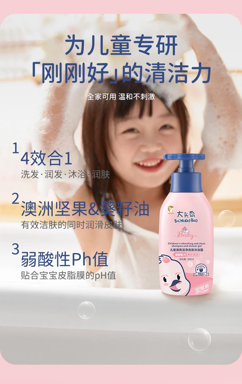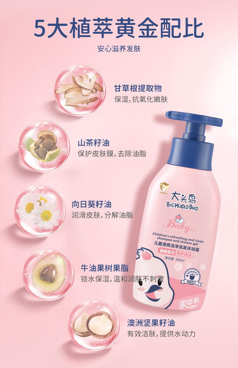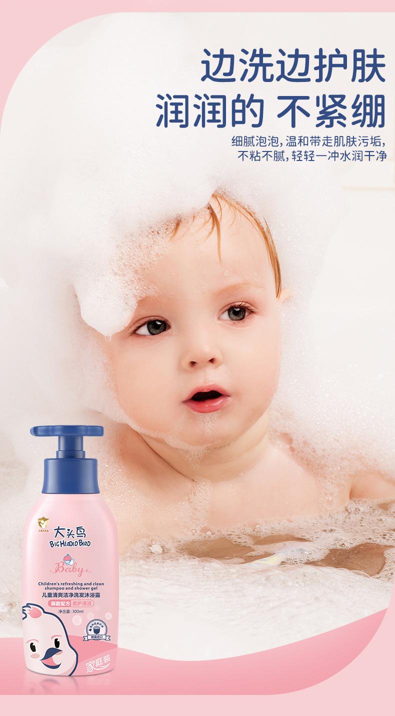 Y Big Head Bird Champú Limpiador Refrescante para Niños y Gel de Baño Gel de Baño para Bebé y Baño Champú 2 en 1 con Ácido Suave Aroma Floral