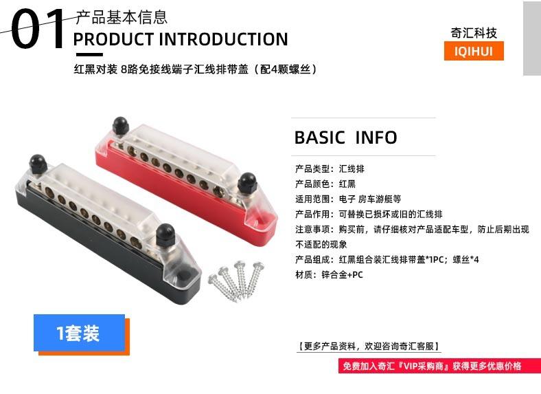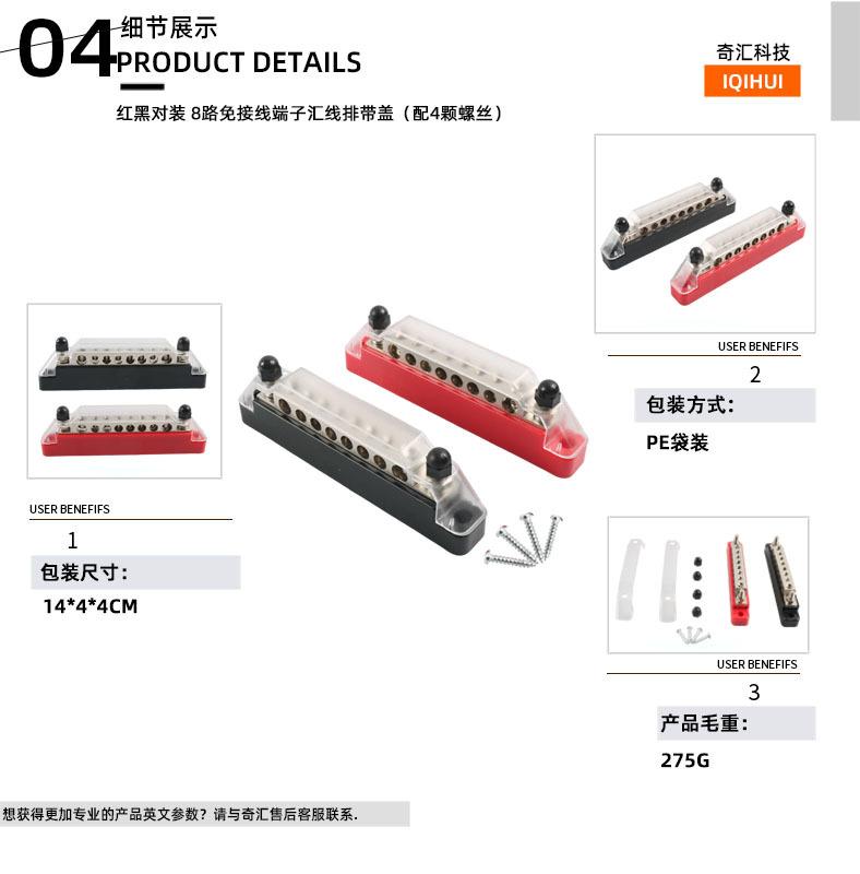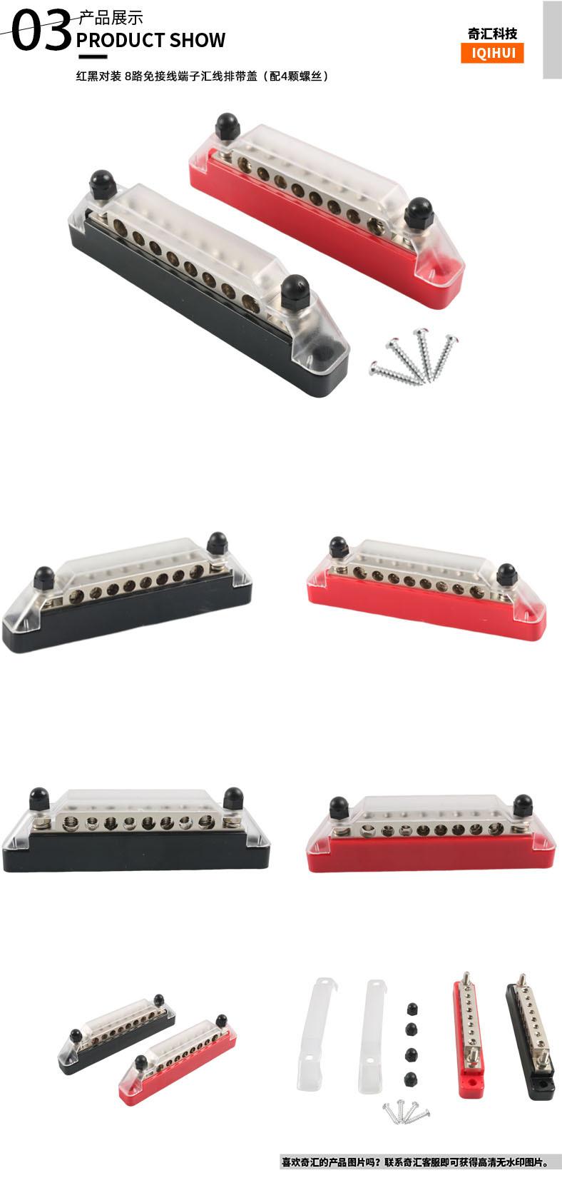 Cableado de 8 vías sin terminales, de color rojo y negro, de venta caliente transfronteriza, con cubierta 8 * M5 (con 4 tornillos de fijación)