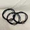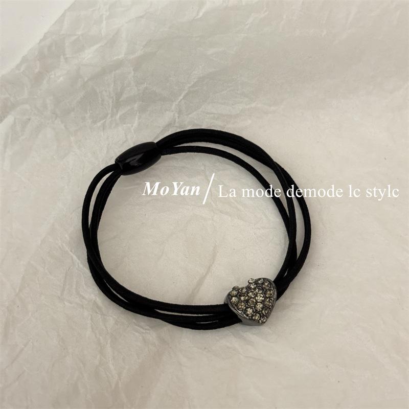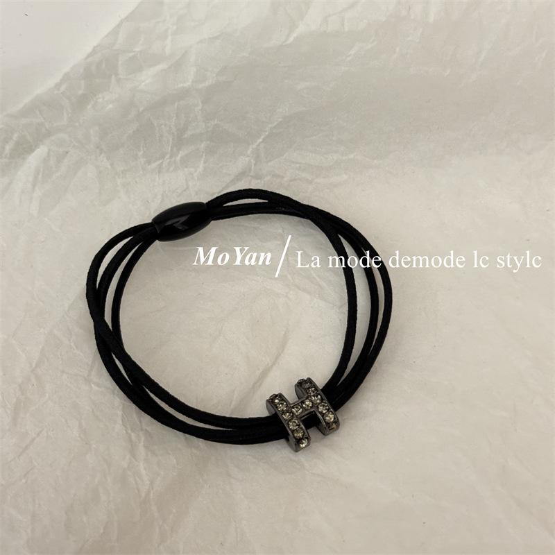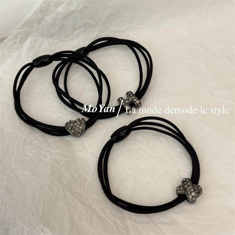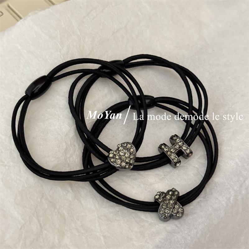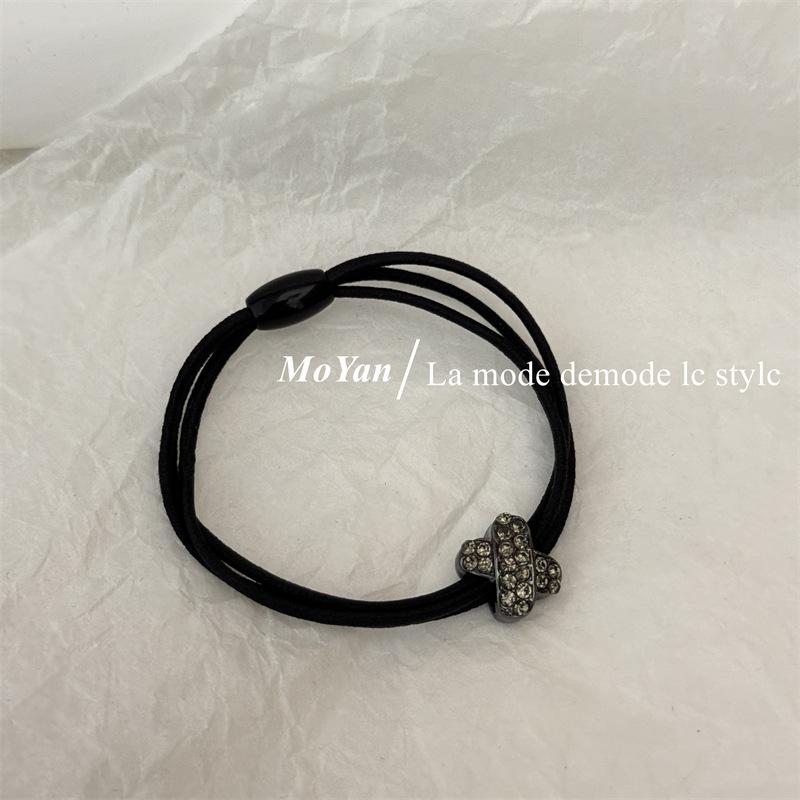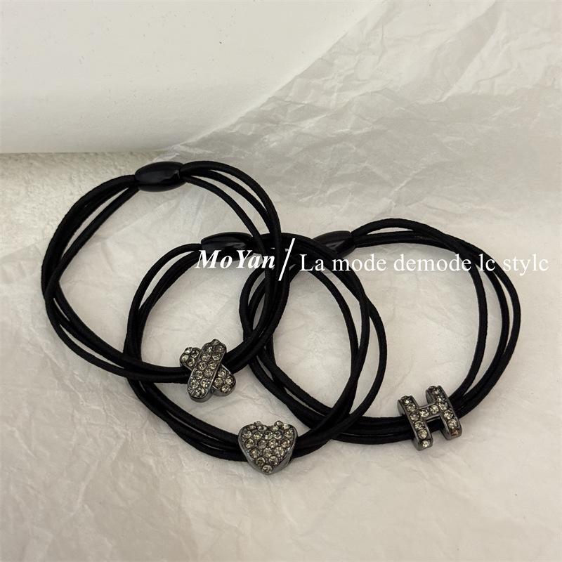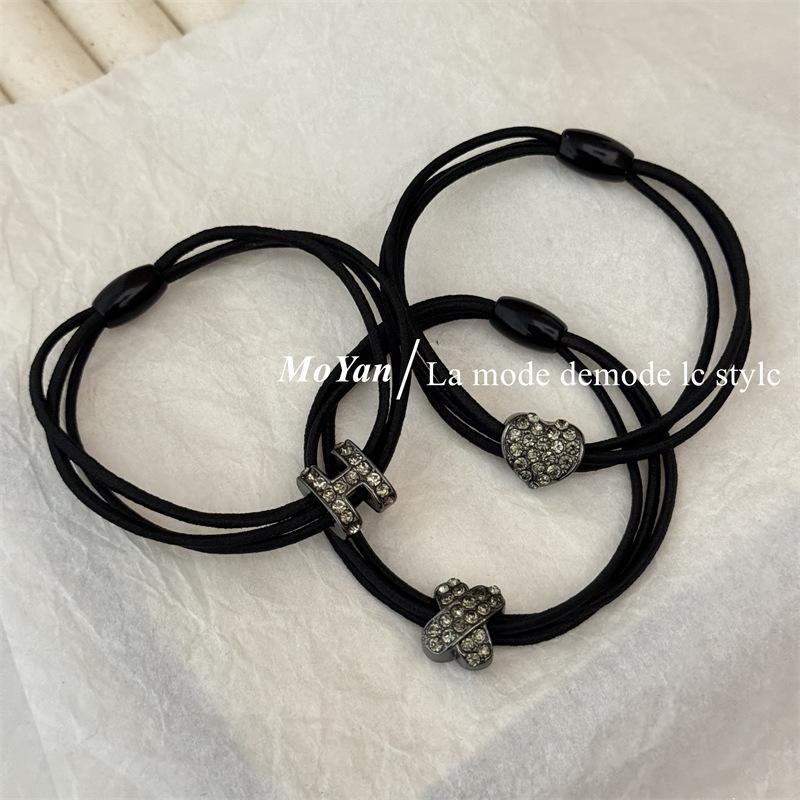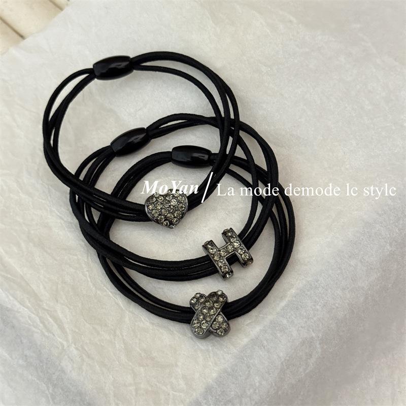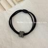 Cola de caballo estilo coreano vintage gris con diamantes de imitación, aleación, cuerda para la cabeza, aro para el pelo para mujer, tocado con cuerda para el pelo que combina con todo, banda de goma sencilla con cubierta de cuero