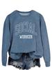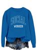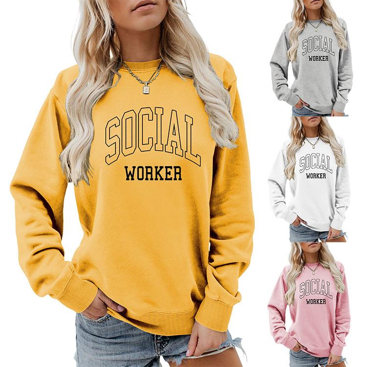 Suéter de cuello redondo con letras europeas y americanas, jersey de moda transfronteriza para TRABAJADOR SOCIAL, top de manga larga para mujer en stock al por mayor