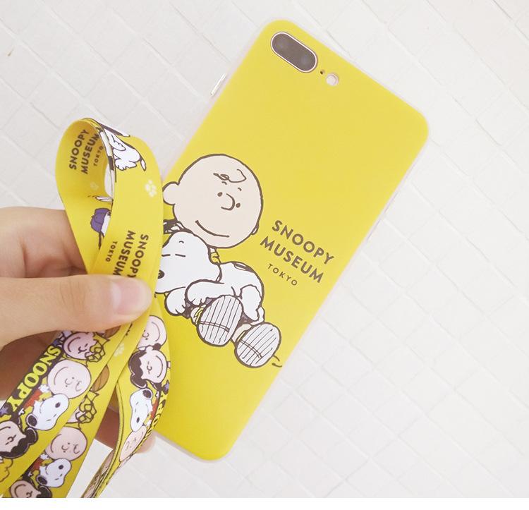 Cordón ancho para teléfono móvil con diseño de dibujos animados para mujer, cordón largo para funda de móvil, cadena colgante, llavero, cuerda corta, Snoopy