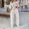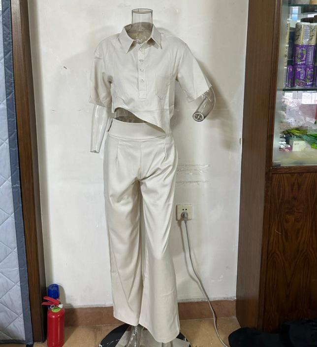 Otoño 2023, nuevo traje de pantalón casual con parte superior irregular y diseño de moda de color sólido transfronterizo de Amazon europeo y americano