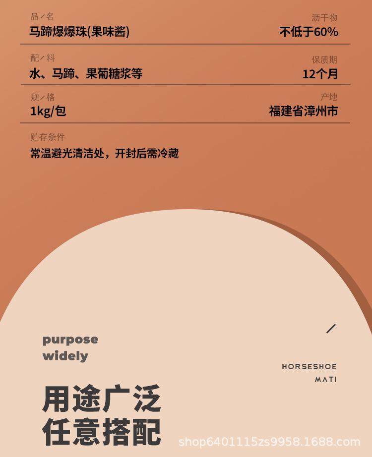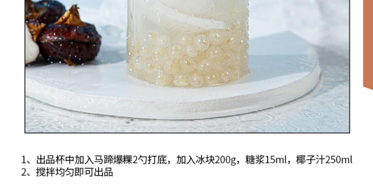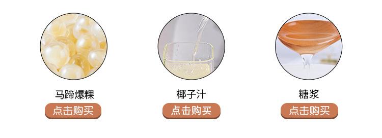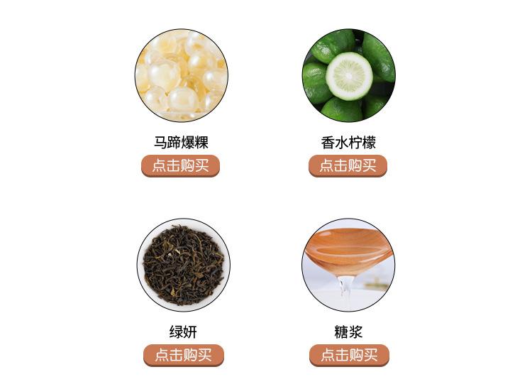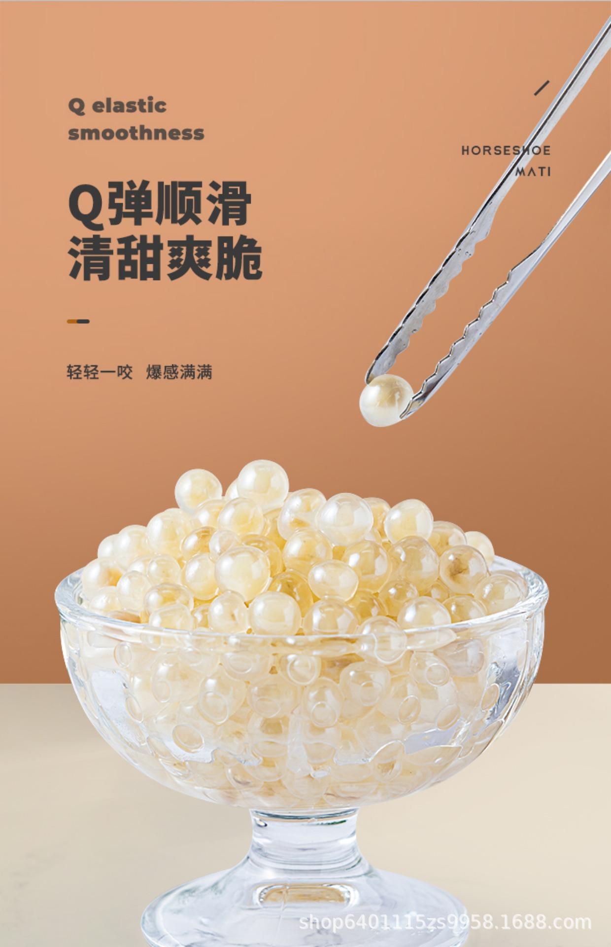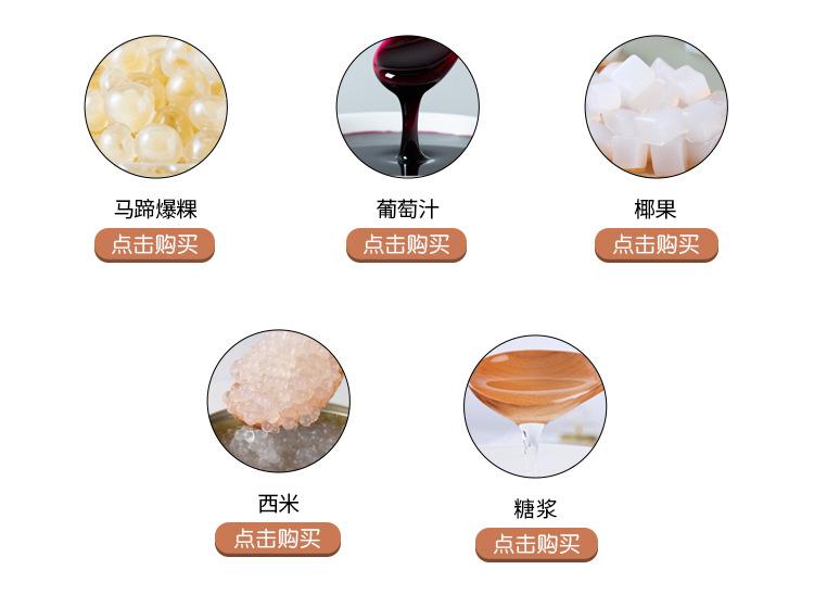 Tienda de té de burbujas con cuentas de castañas de agua, materia prima, polvo de hielo, cuchara de fruta, ingredientes, castañas de agua, huevo crujiente, bobo comercial
