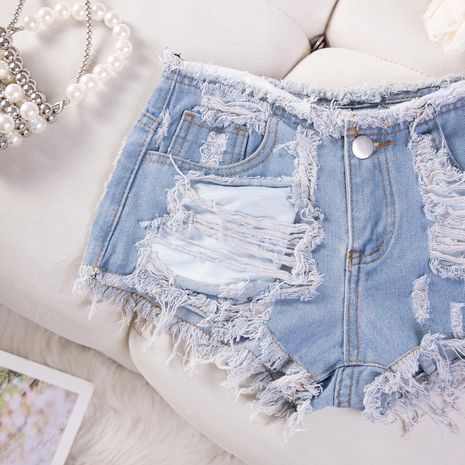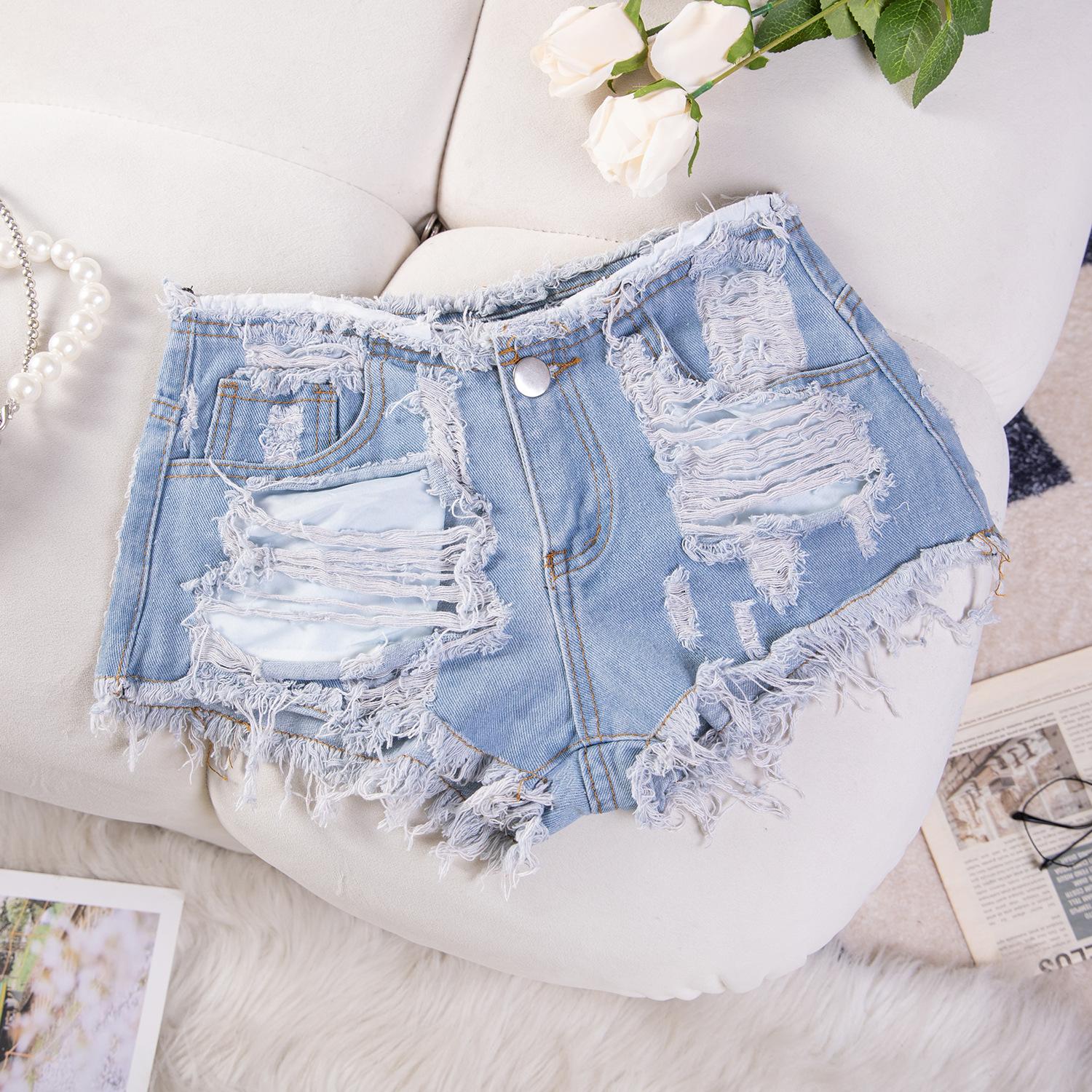 6020# Pantalones cortos vaqueros rasgados de cintura baja sexys de Amazon para mujer