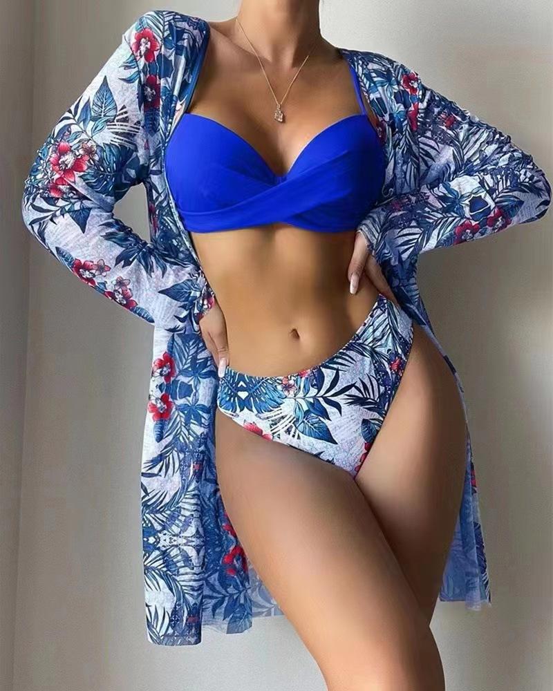 Traje de Baño Nuevo de Comercio Exterior Europeo y Americano de Tres Piezas Ropa Exterior Bikini Europeo y Americano Transfronterizo Traje de Baño Dividido para Mujer Bikini