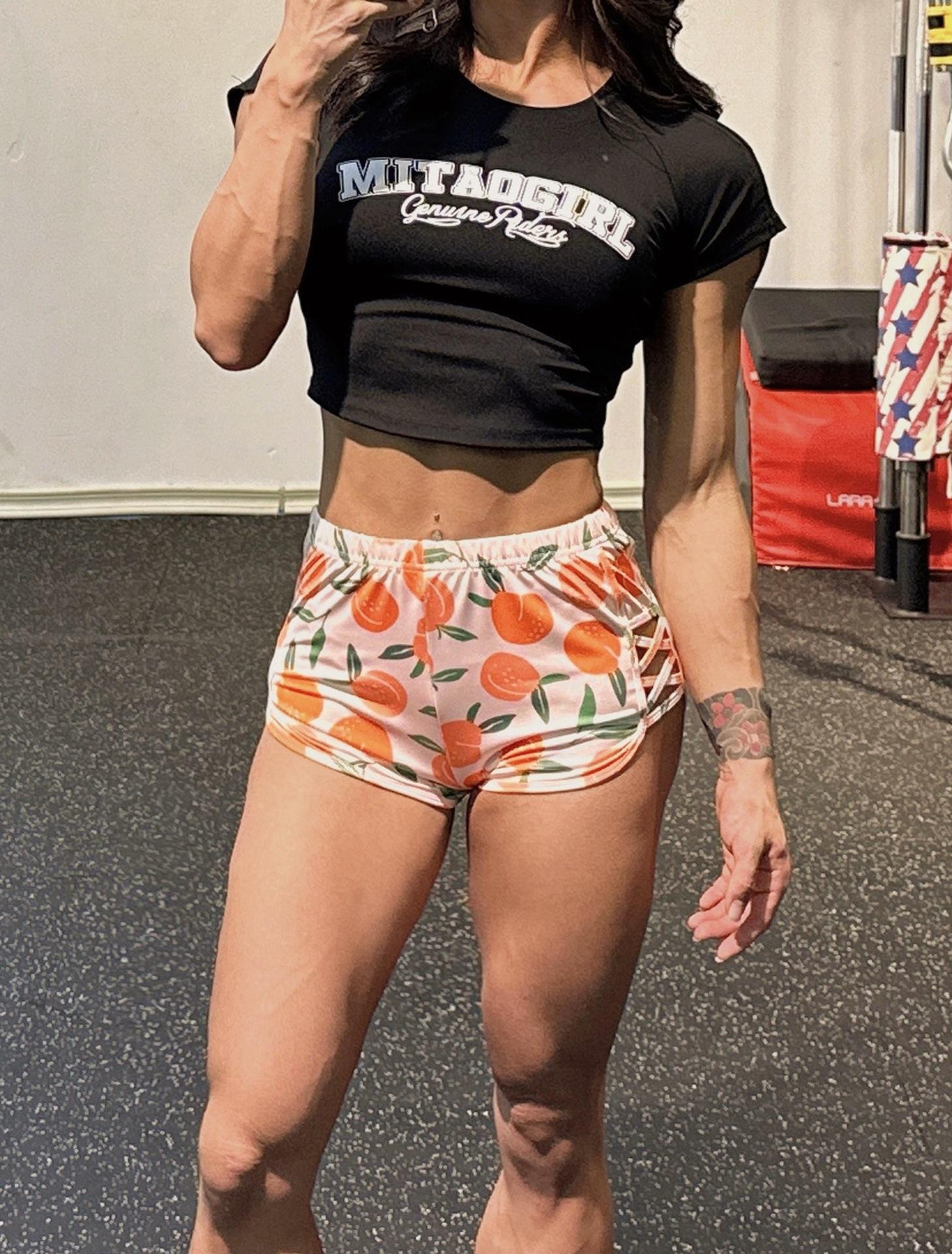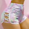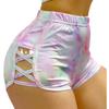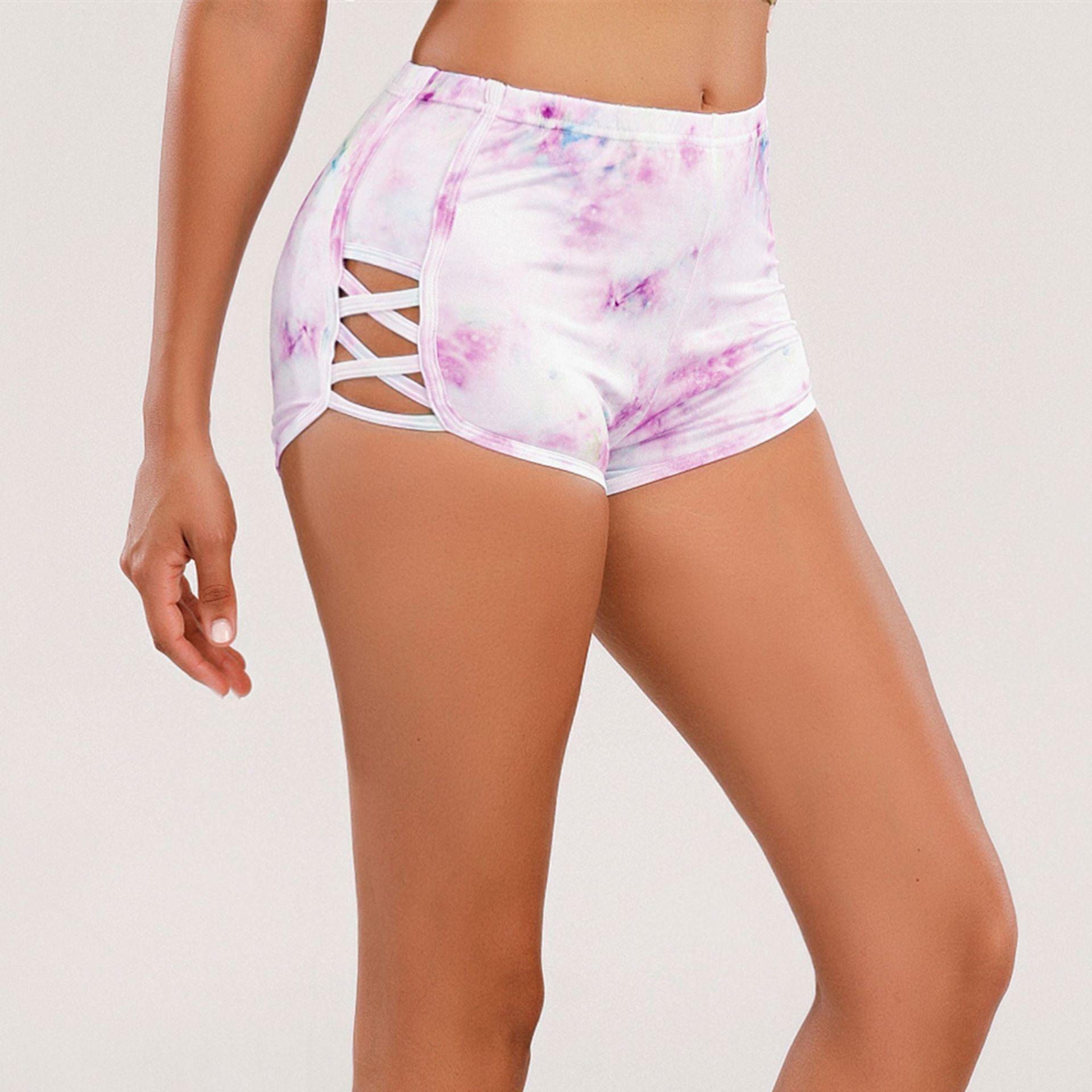 Shorts Deportivos de Yoga y Fitness de Cintura Alta con Estampado Cruzado Lateral para Mujer