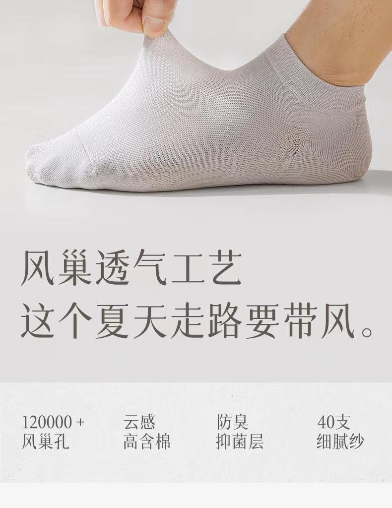 Calcetines de algodón de verano para hombre, antibacterianos, desodorantes, absorbentes del sudor, finos, de malla, con parte inferior de masaje y parte superior baja, para negocios