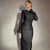Ropa de Mujer Otoño 2025 Nueva Temperamento Europeo y Americano Un Hombro Color Sólido Manga Larga Ajustado Sexy Bodycon Fruncido Vestido
