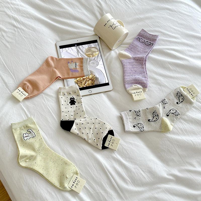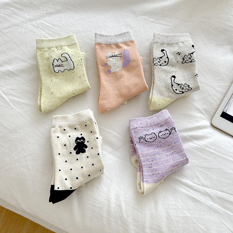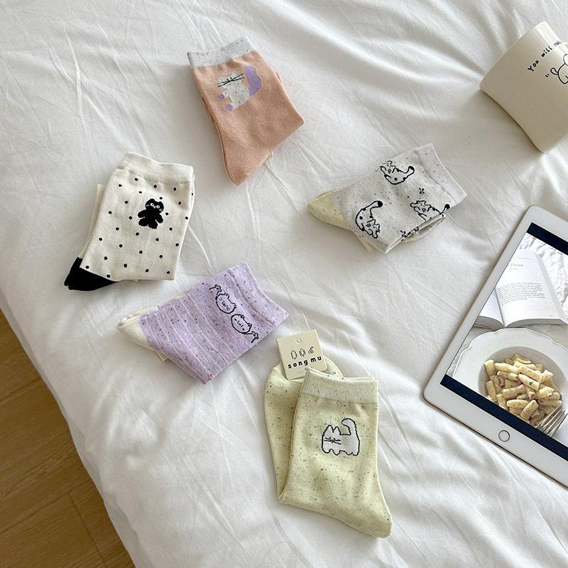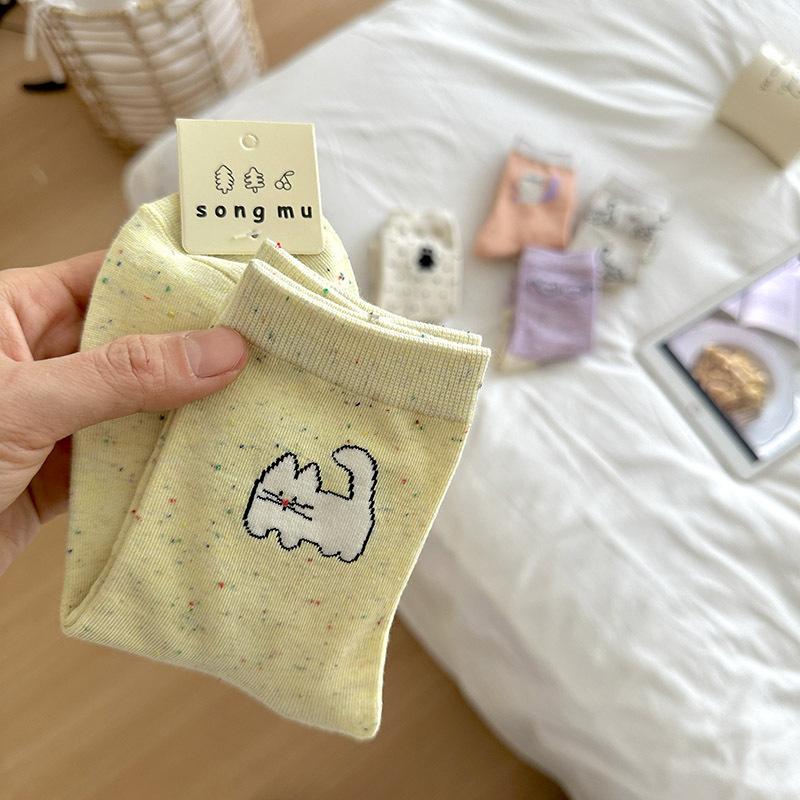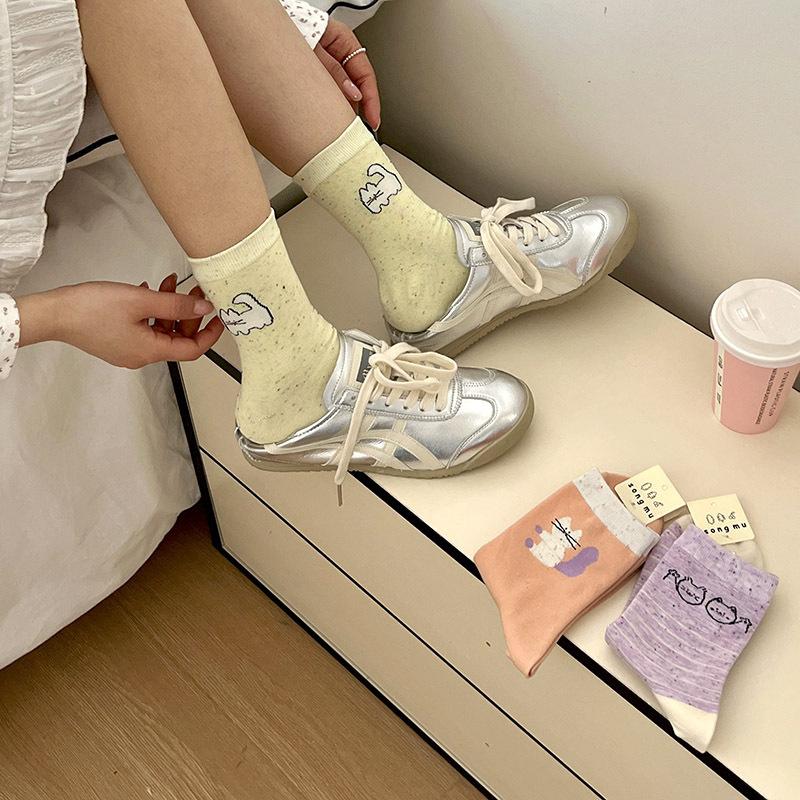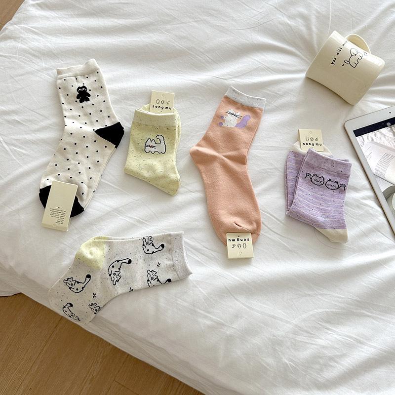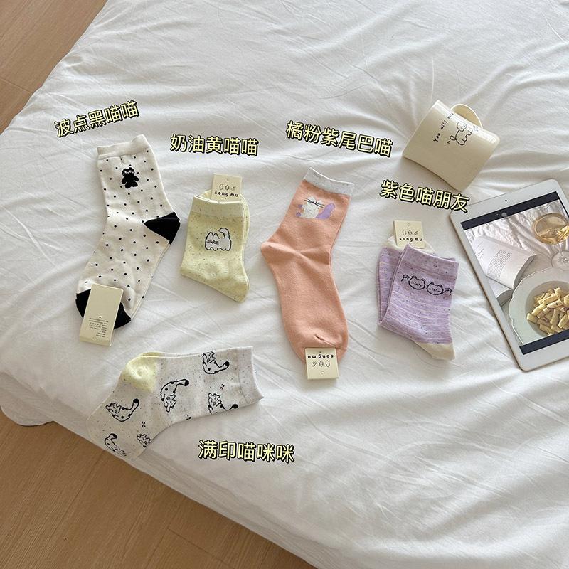 Calcetines de estilo coreano para mujer, de otoño e invierno, de hilo puntiagudo, estilo académico, con bonitos dibujos animados, de algodón japonés, al por mayor