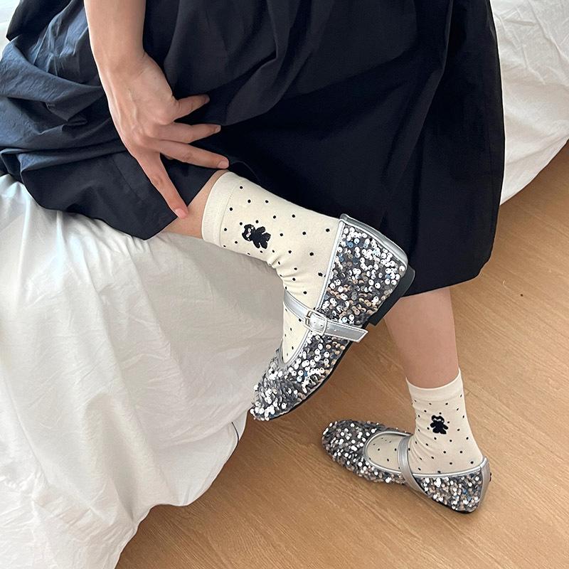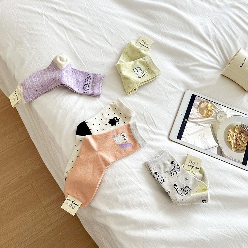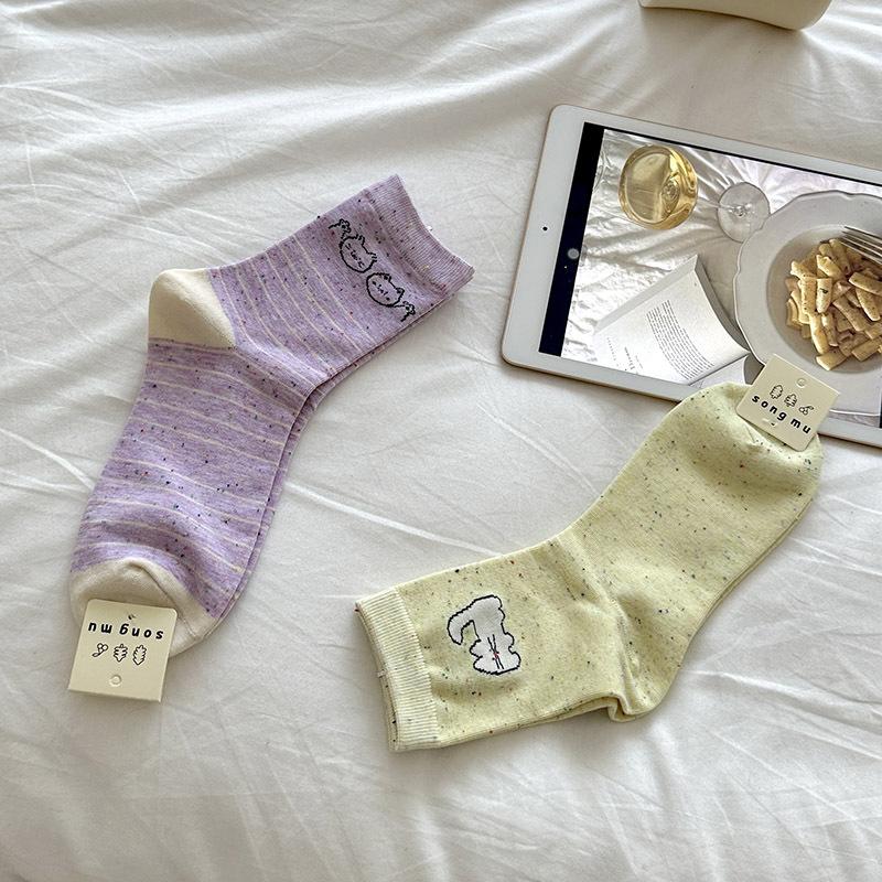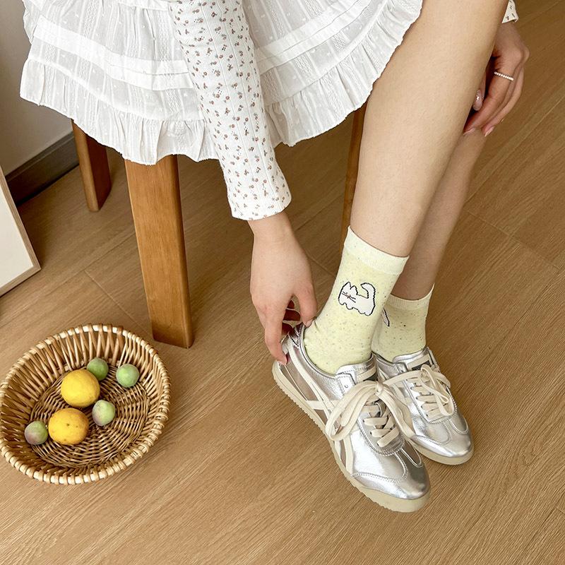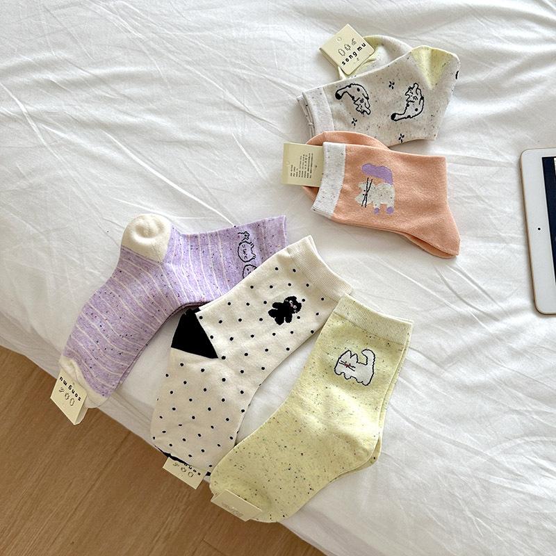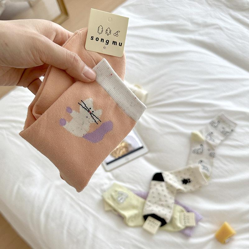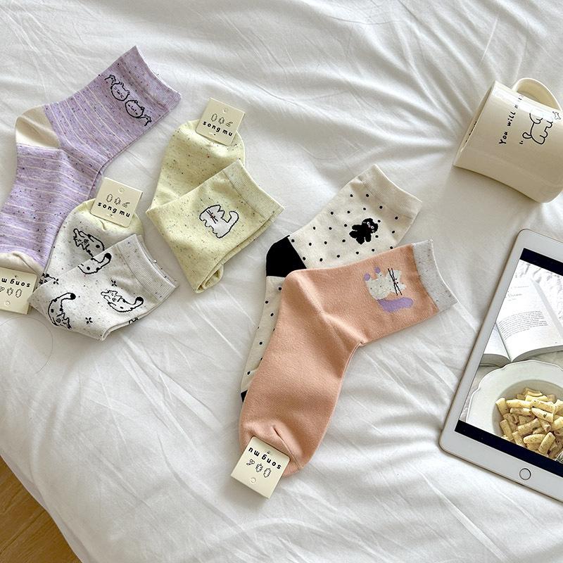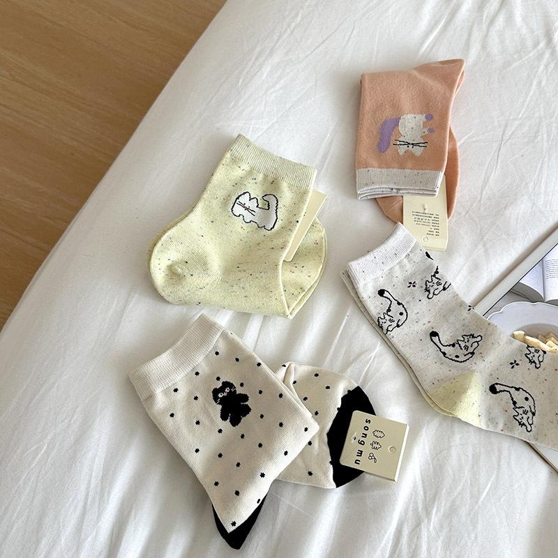 Calcetines de estilo coreano para mujer, de otoño e invierno, de hilo puntiagudo, estilo académico, con bonitos dibujos animados, de algodón japonés, al por mayor