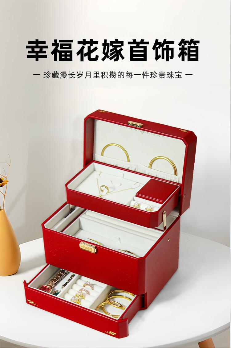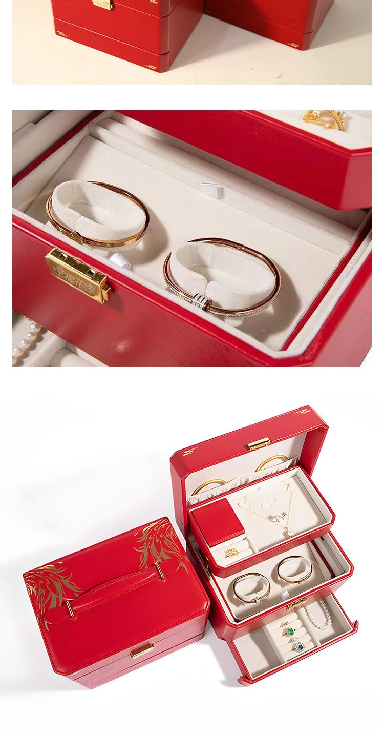 Caja de almacenamiento retro de gran capacidad de tres capas, caja de almacenamiento de joyas portátil para bodas, caja de almacenamiento de joyas, caja de joyería de tres capas dorada