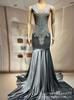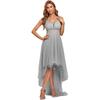 Vestido de noche de calidad europea y americana de 24 pulgadas con escote en V profundo, mangas cortas y lentejuelas que deletrean sensación de irregularidad, vestido de dama de honor de malla multicapa.