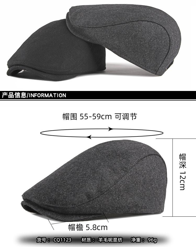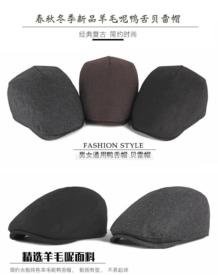 Sombrero de primavera y otoño invierno para hombre boina de lana de color sólido para hombre gorra con visera simple retro británica para hombre sombrero de moda para mujer