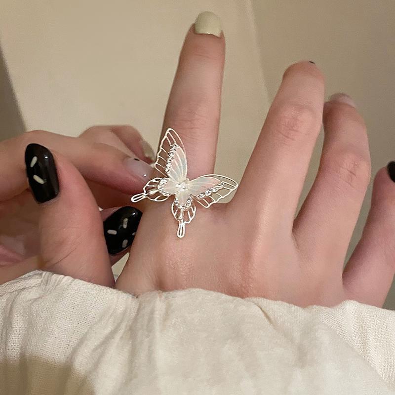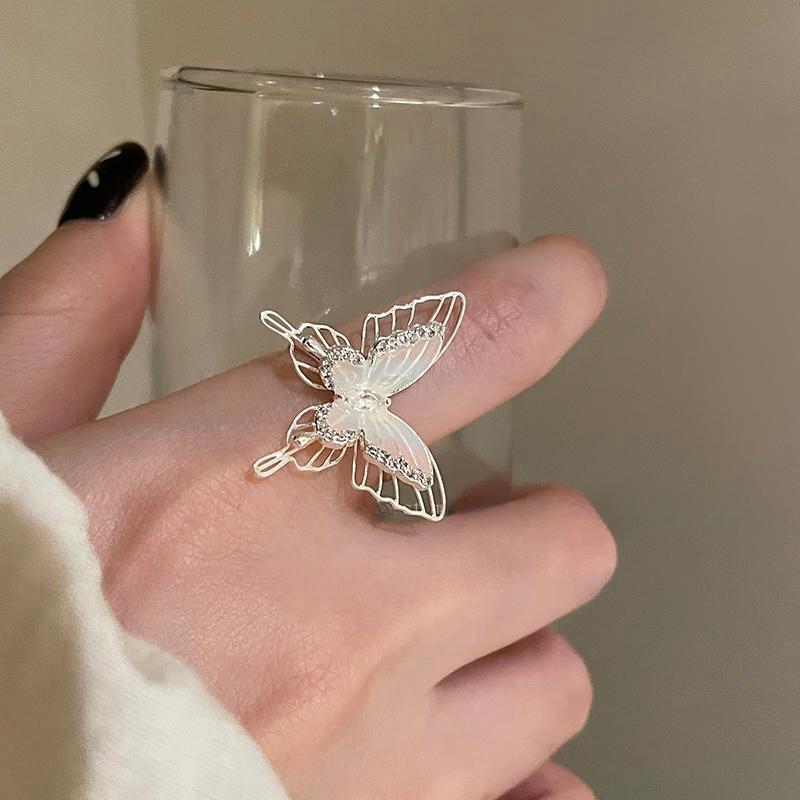 Anillo de Circonita Mariposa Color Degradado para Mujer Nuevo Estilo Chino Dulce Anillo Combinable Temperamento Sentido Avanzado Anillo de Dedo Ajustable para Adelgazar