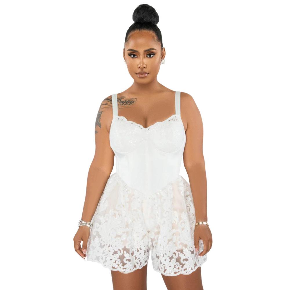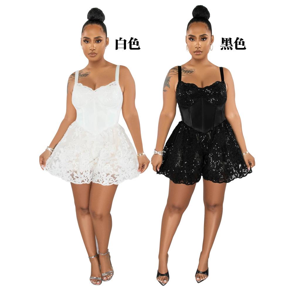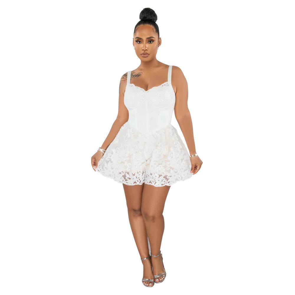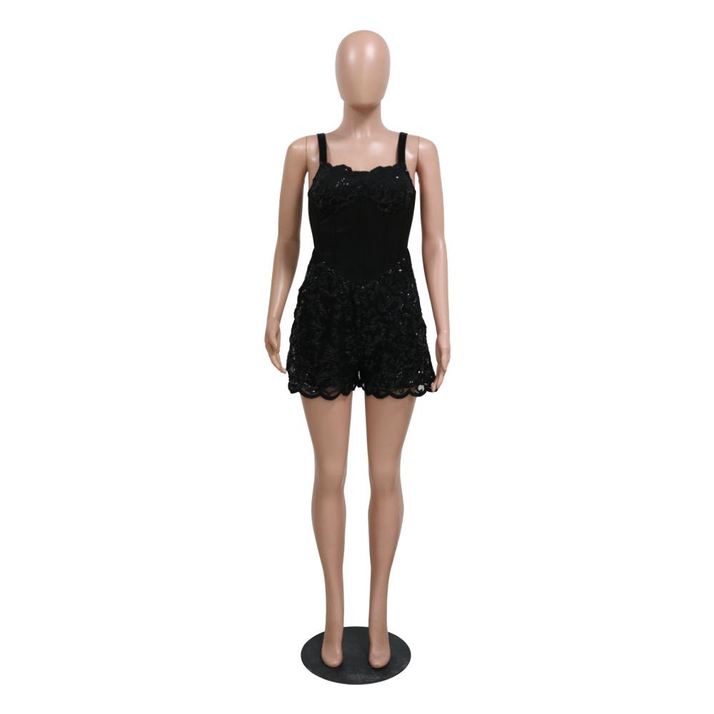 CY900581 Mono holgado de encaje con tirantes, moda europea y americana, pantalones de pierna ancha ajustados, comercio exterior transfronterizo para mujeres
