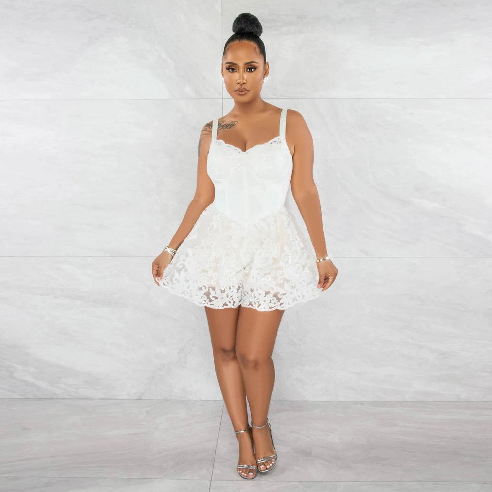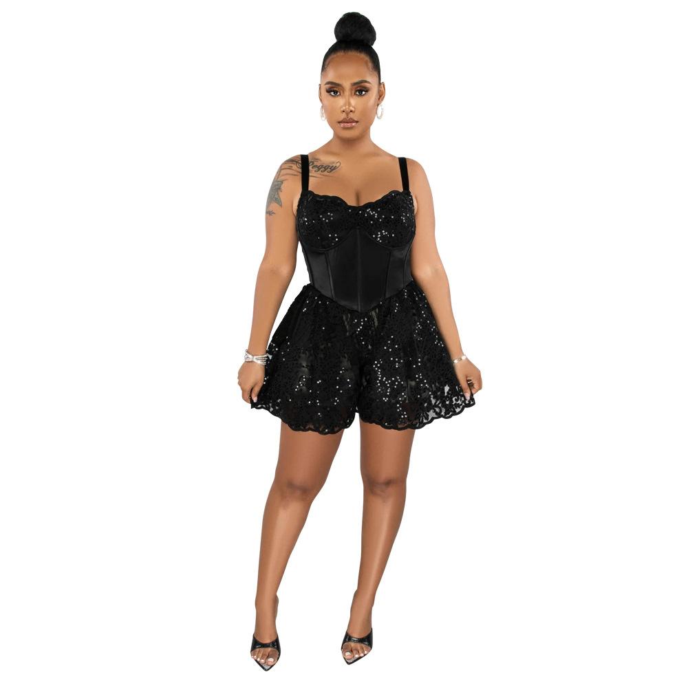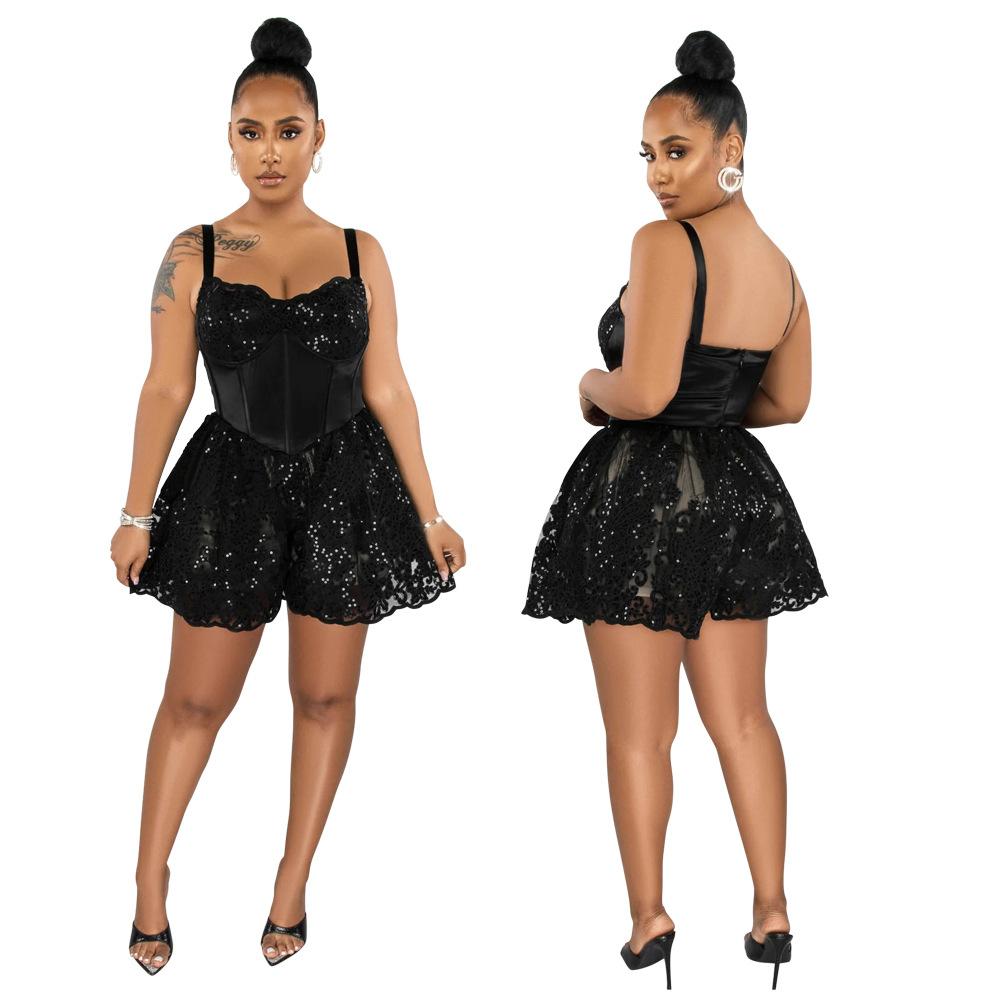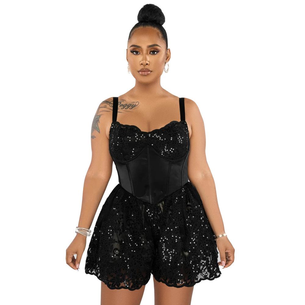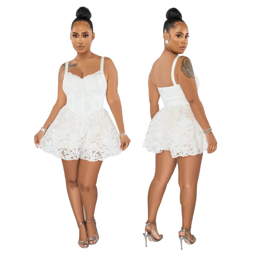 CY900581 Mono holgado de encaje con tirantes, moda europea y americana, pantalones de pierna ancha ajustados, comercio exterior transfronterizo para mujeres