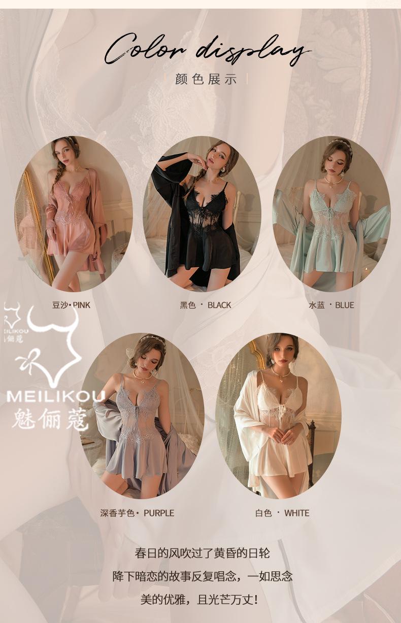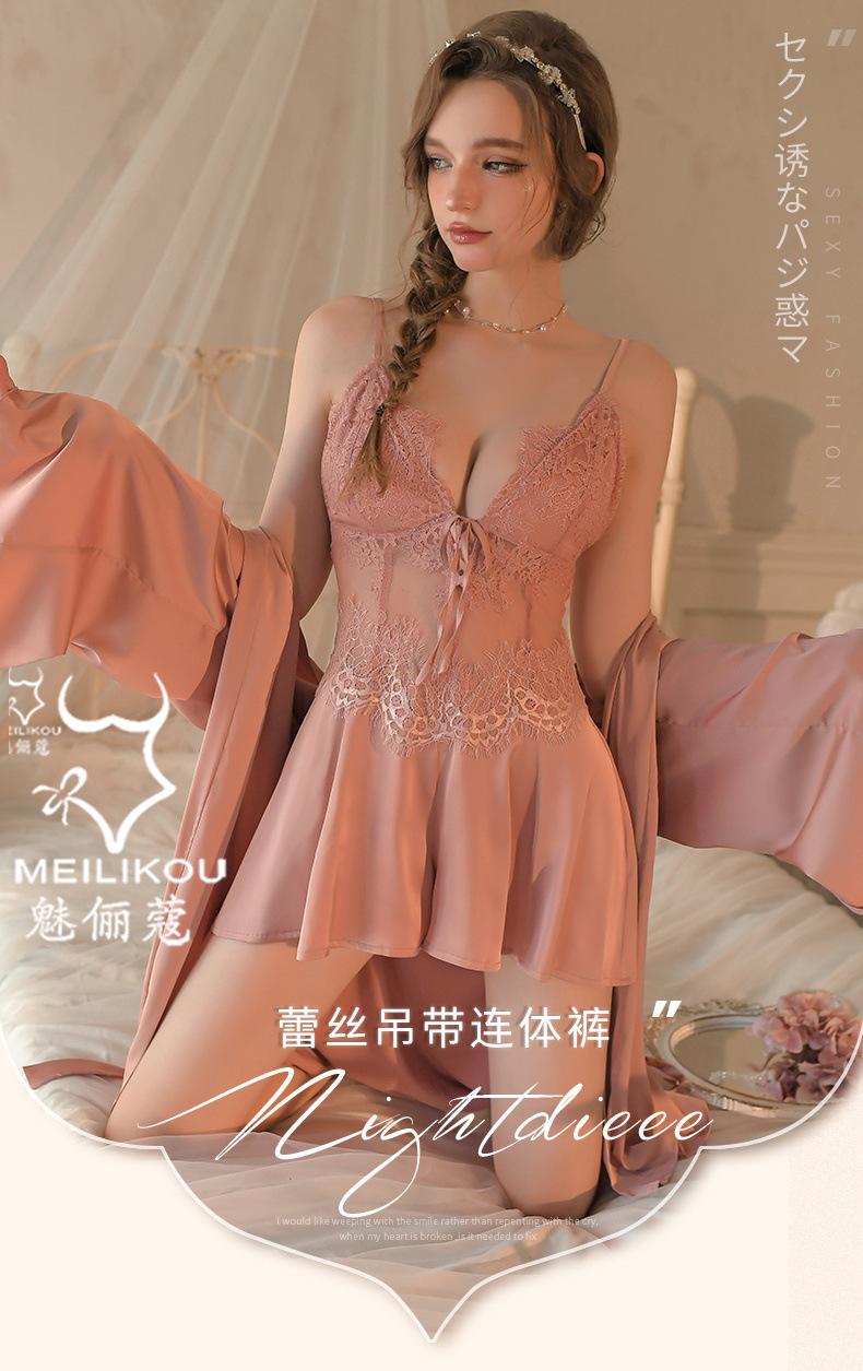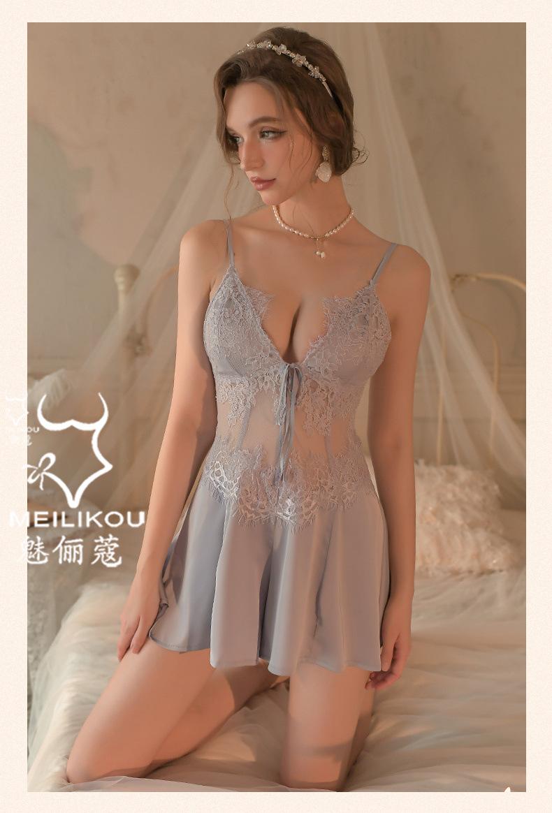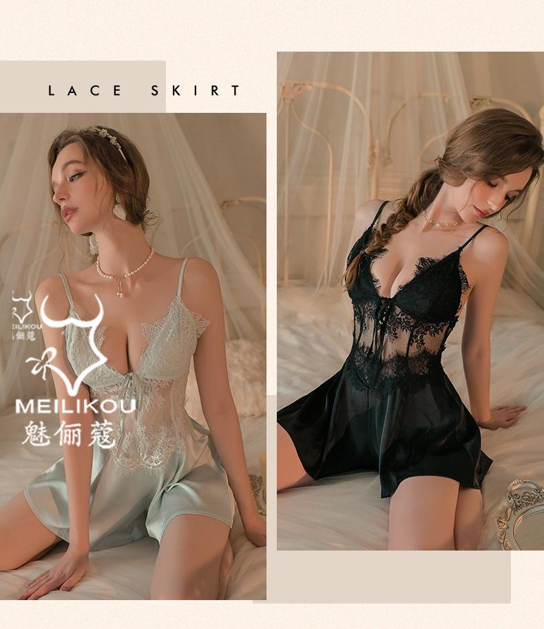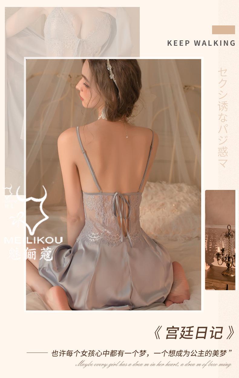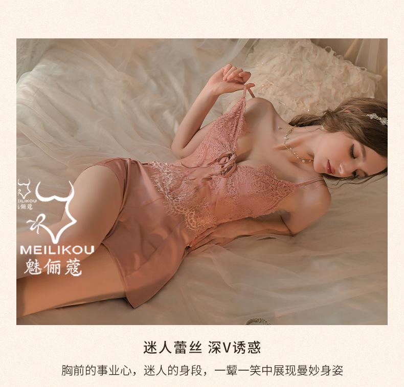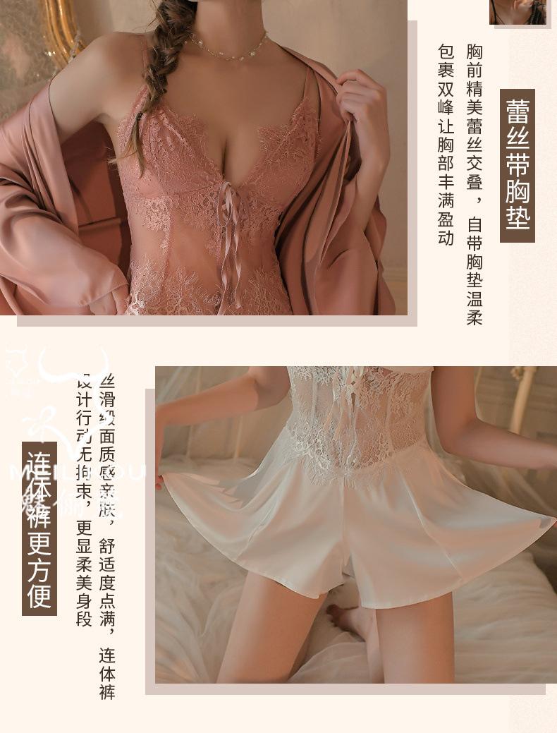Lencería Sexy, Ropa de Casa Sexy de Encaje, Nuevo Camisón Fino de Seda de Hielo Puro Lustre con Almohadillas para el Busto, Camisón de Una Pieza 2062