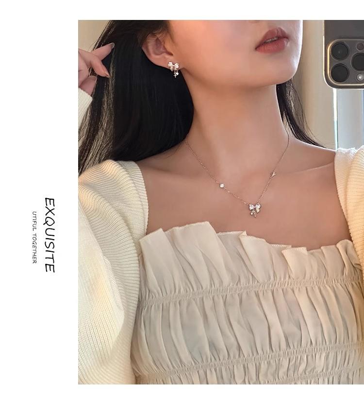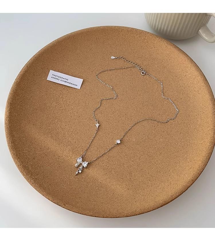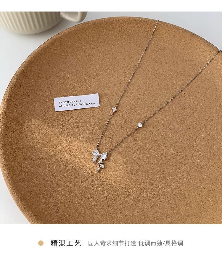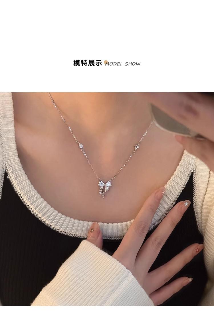 Collar con lazo de diamantes Super Flash para mujer, estilo Ins 2024, diseño de estrella de nicho simple, cadena de clavícula