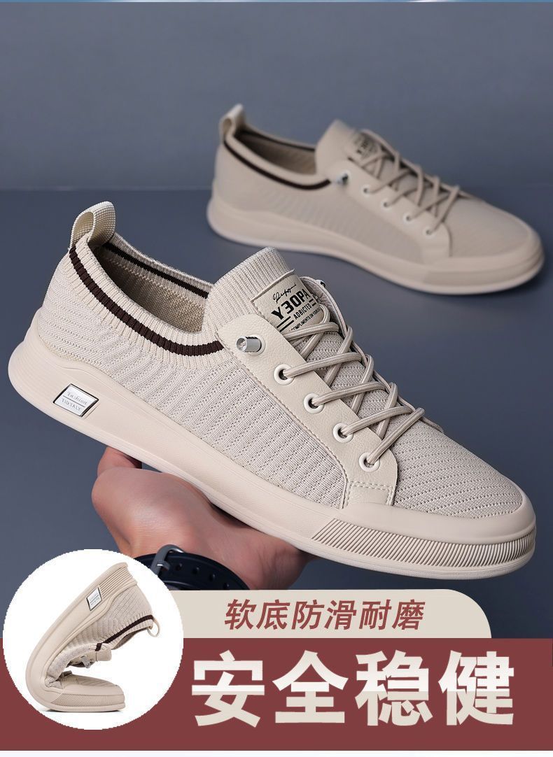 Zapatos de hombre de verano, nuevos zapatos de malla tejida voladora, transpirables, ligeros, finos, sin cordones, modernos, deportivos e informales.