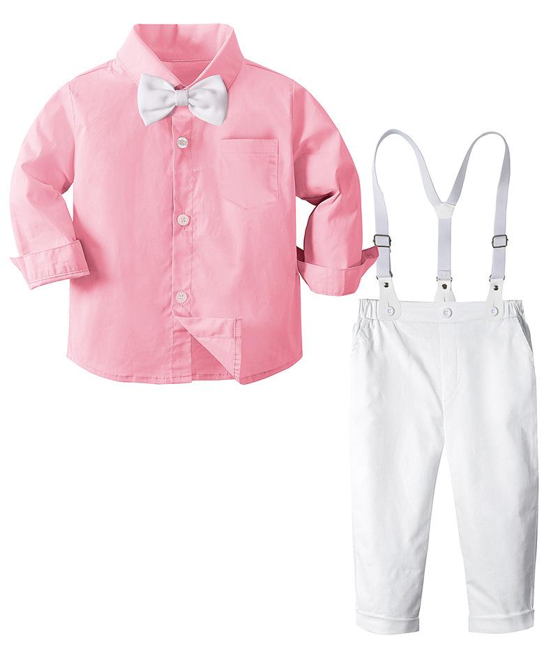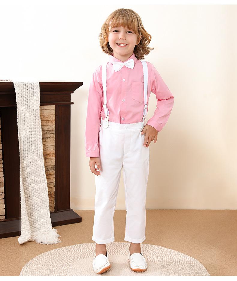 Nueva ropa infantil transfronteriza, traje de manga larga con tirantes y pajarita para niños, traje de niña de las flores para bebés, vestido de una generación de cabello