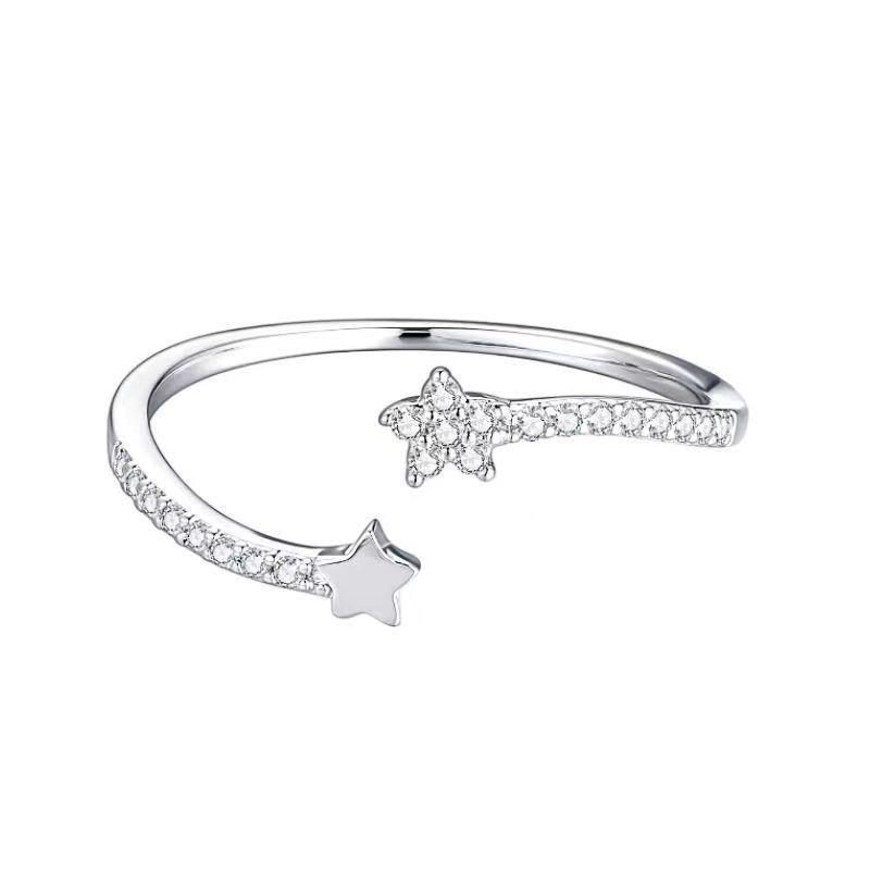 Aleación + circonita. Diámetro interior 1.8 cm, abertura ajustable. (Peso 8g)