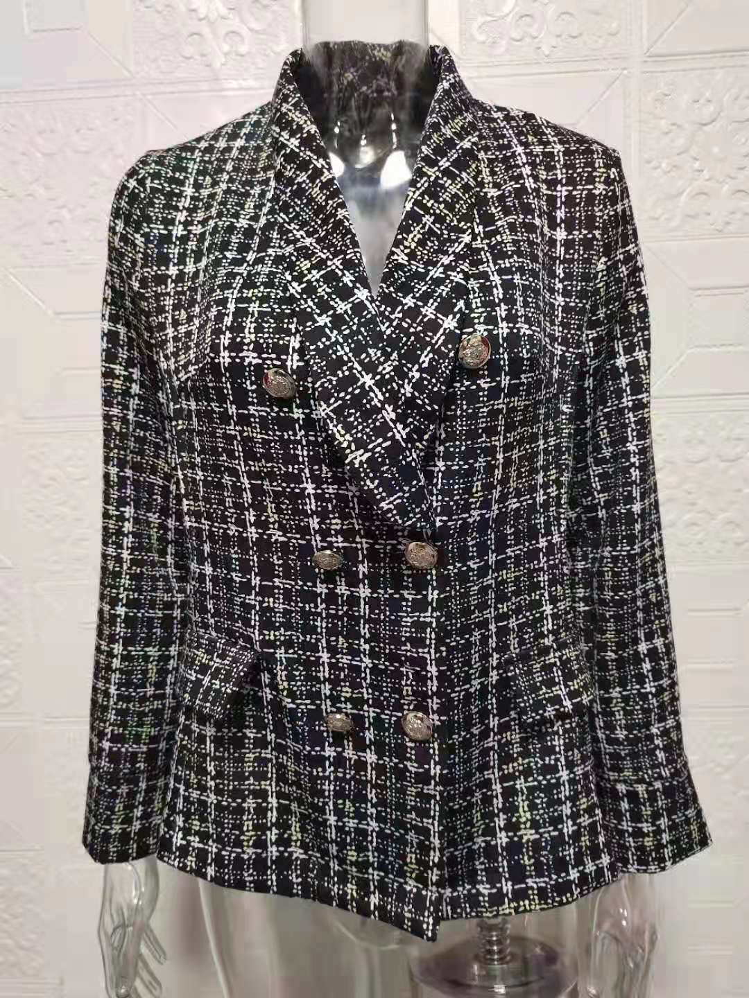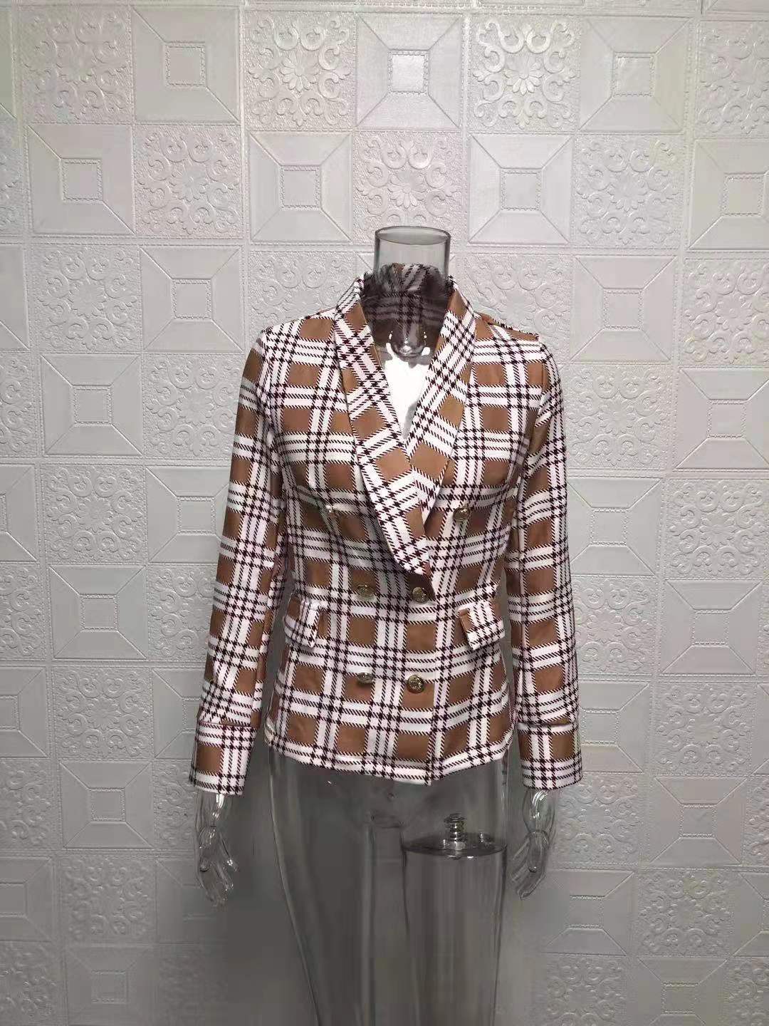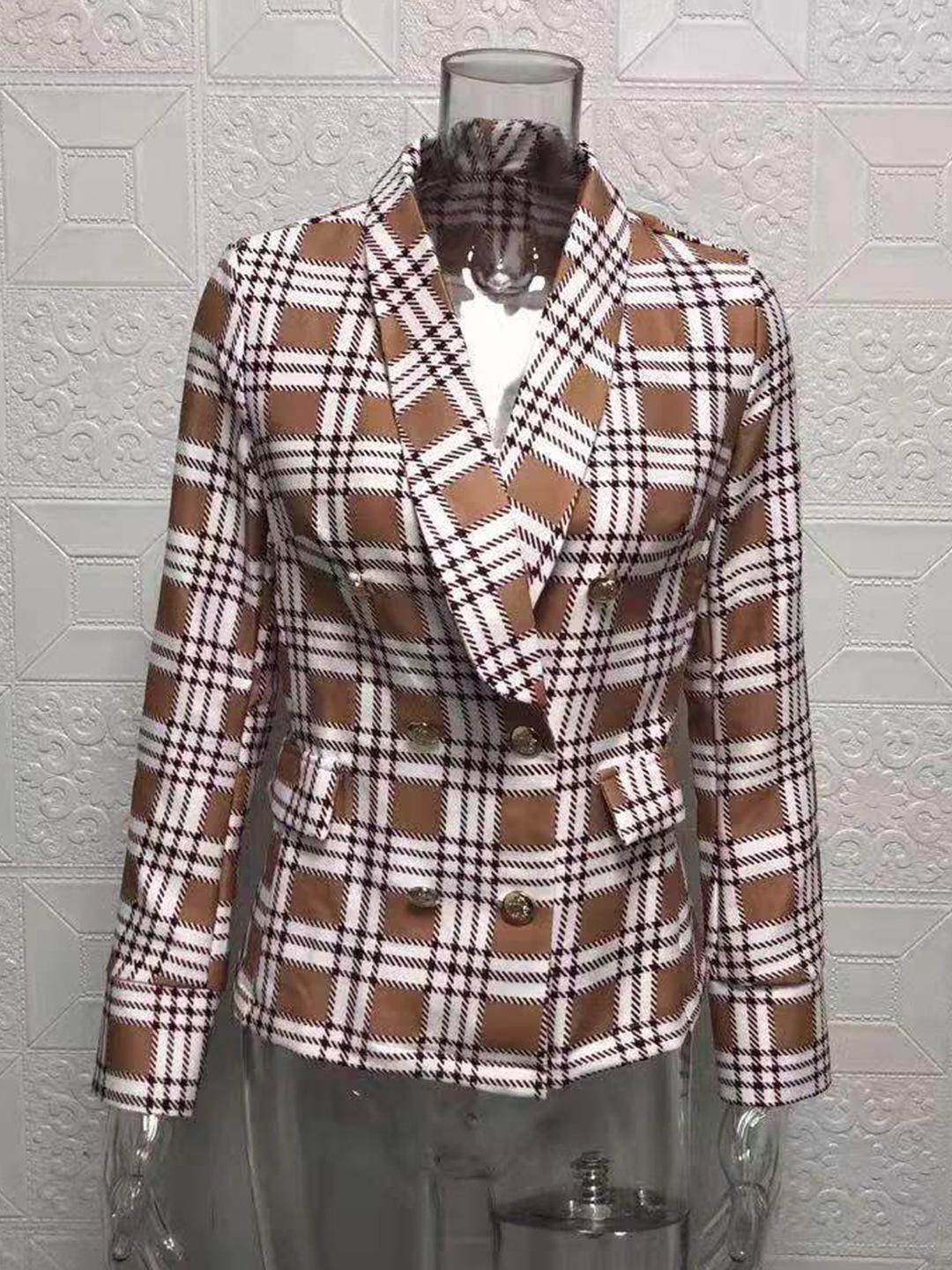 2024 Nuevo Estilo de Estación Independiente para Mujer Wish Amazon Moda de Primavera Chaqueta Estilo Traje de Doble Botonadura de Manga Larga Estampada