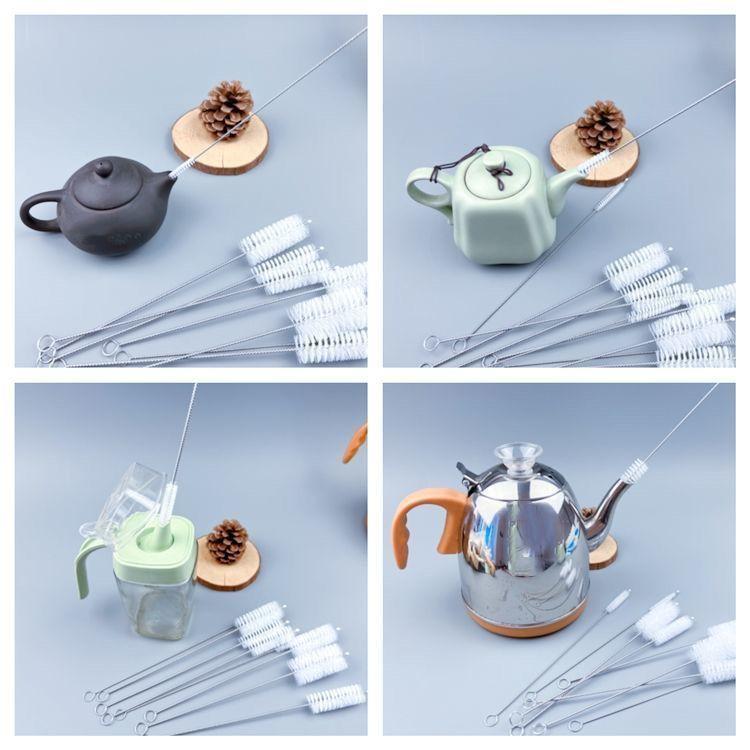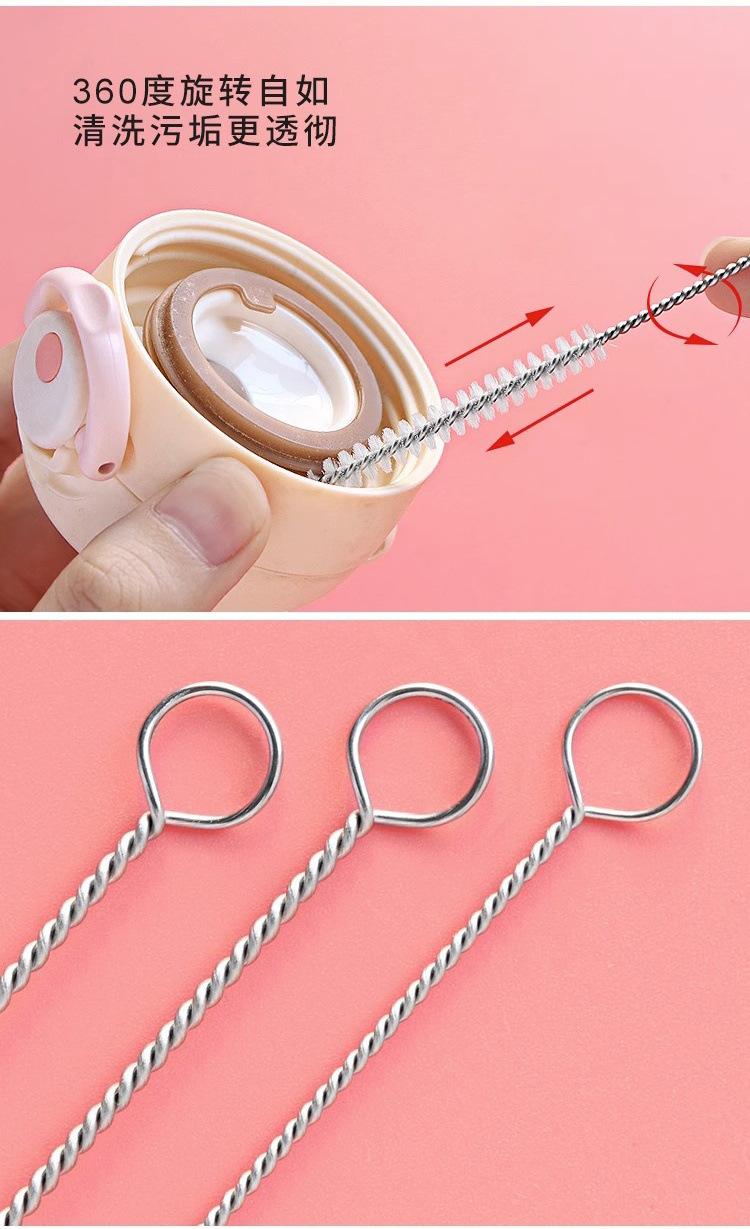 Cepillo de tubo de succión delgado de 360 grados, cepillo para pezones, cepillo de esponja para biberones, cepillo de limpieza para bebés con limpiador de cabezales.
