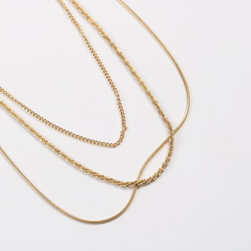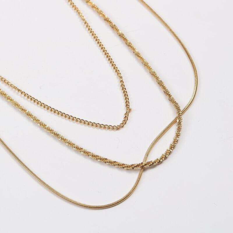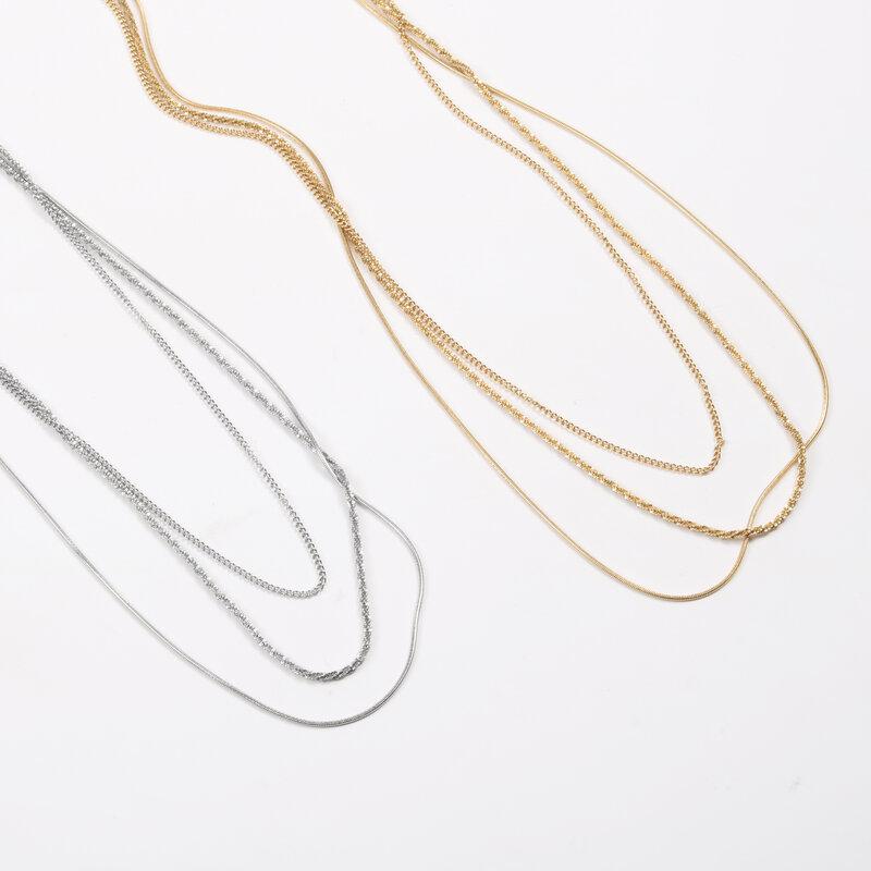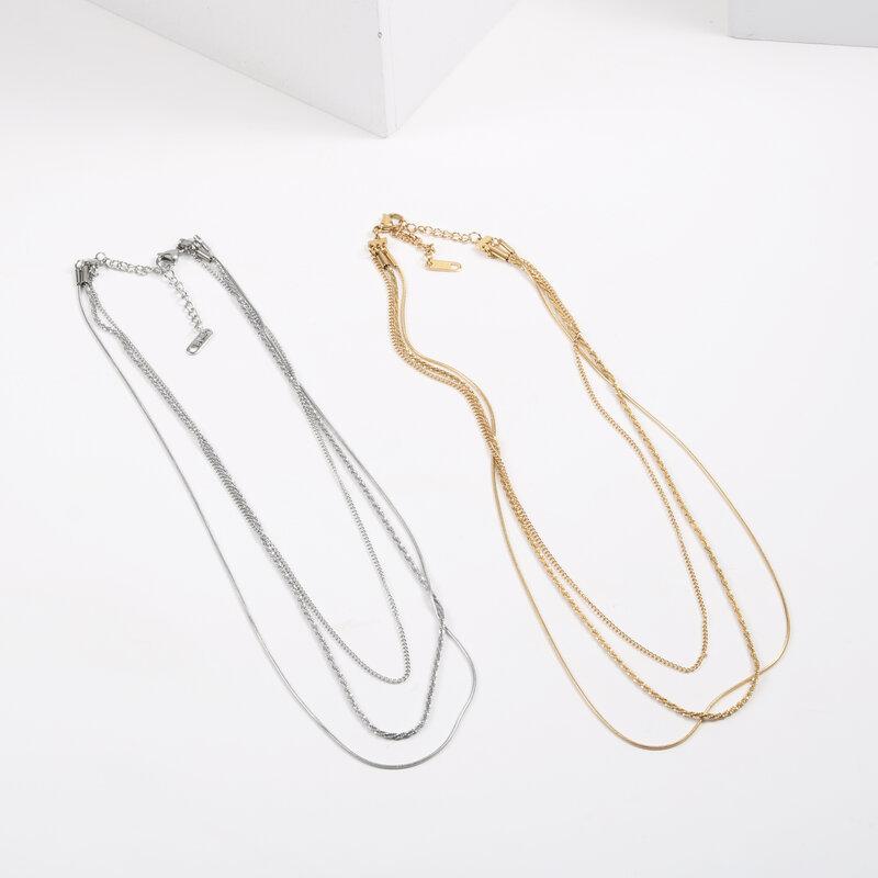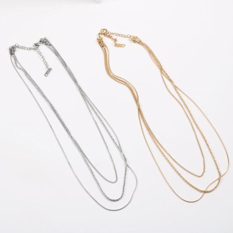 Collar de tres capas con cadena de clavícula y pequeño colgante de red roja, joyería de temperamento de moda, chapado en acero de titanio y oro de 18 quilates.