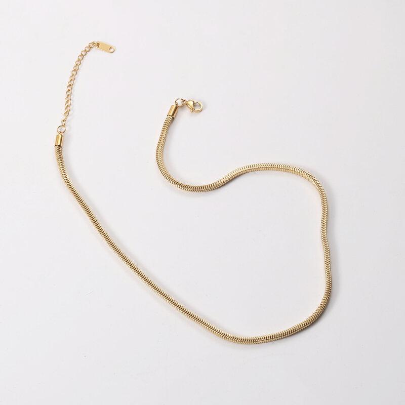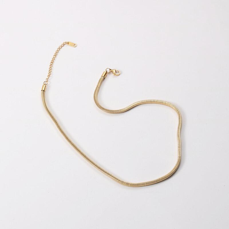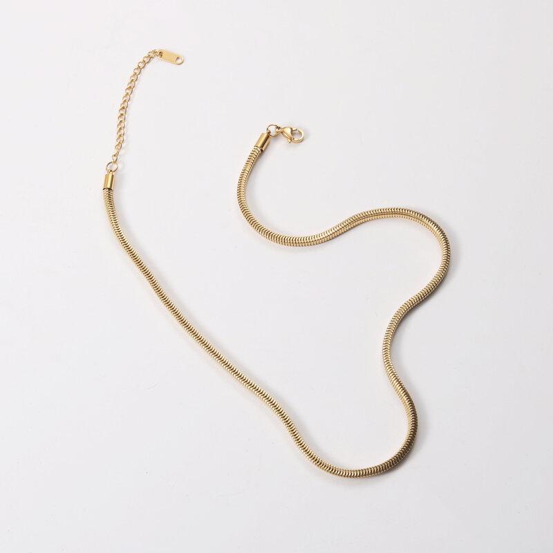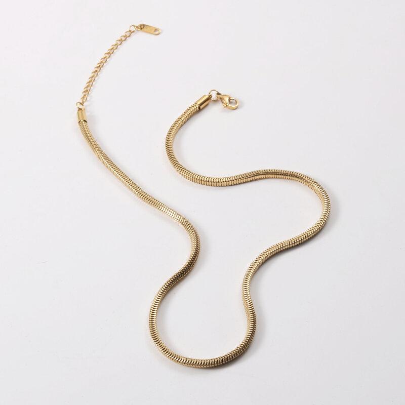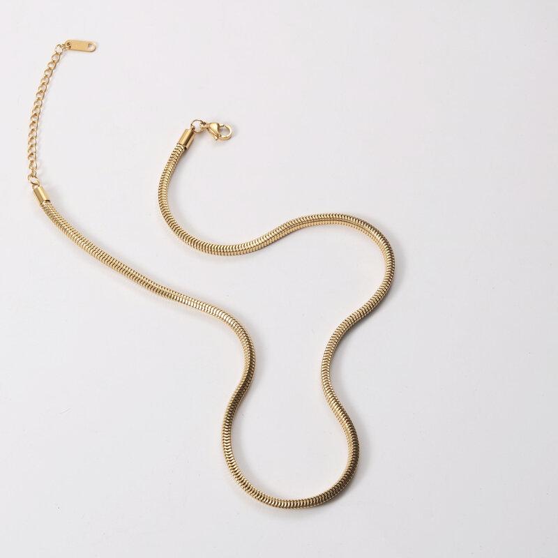Cadena de serpiente cuadrada de 3,0 de ancho con baño de acero de titanio y oro de 18 quilates.