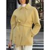 Abrigo de lana de punto cárdigan de otoño e invierno de alta gama con botón de amor flocado brillante decorativo de pierna alta