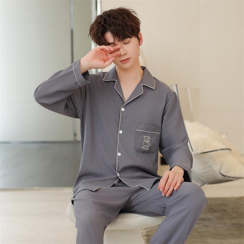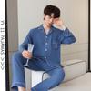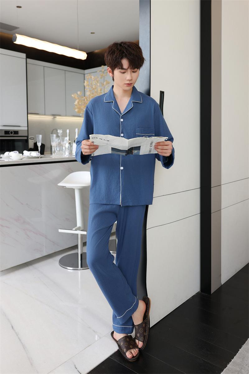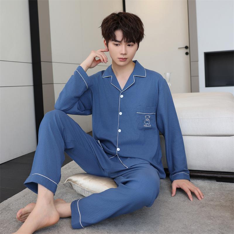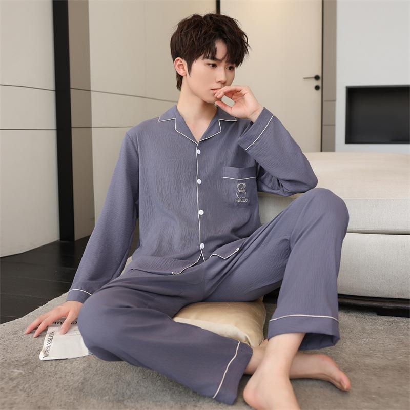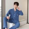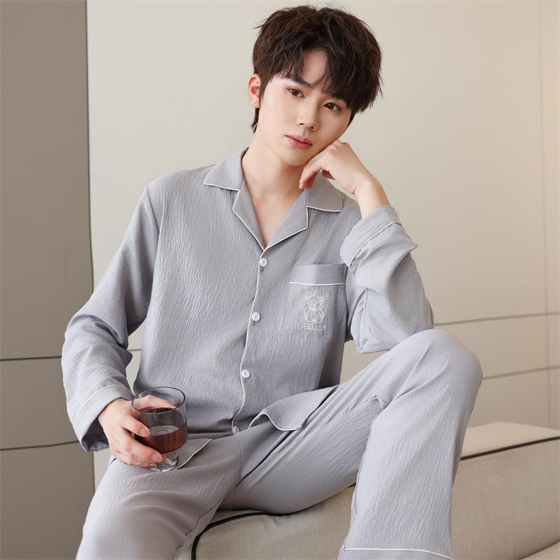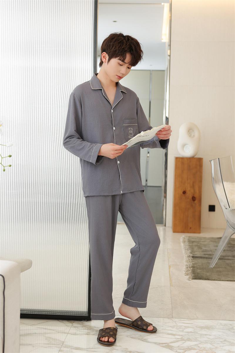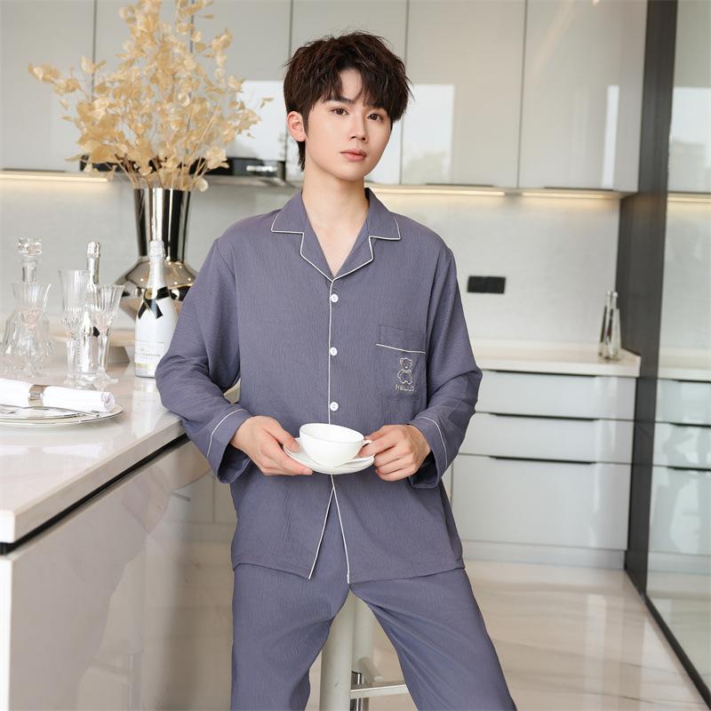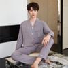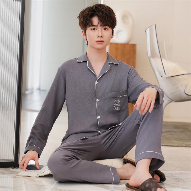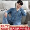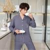 Pijama de Algodón Nube de Talla Extra Grande Traje para Hombre Verano Delgado de Manga Larga Pantalones Cárdigan Solapa Suelto Ropa para el Hogar
