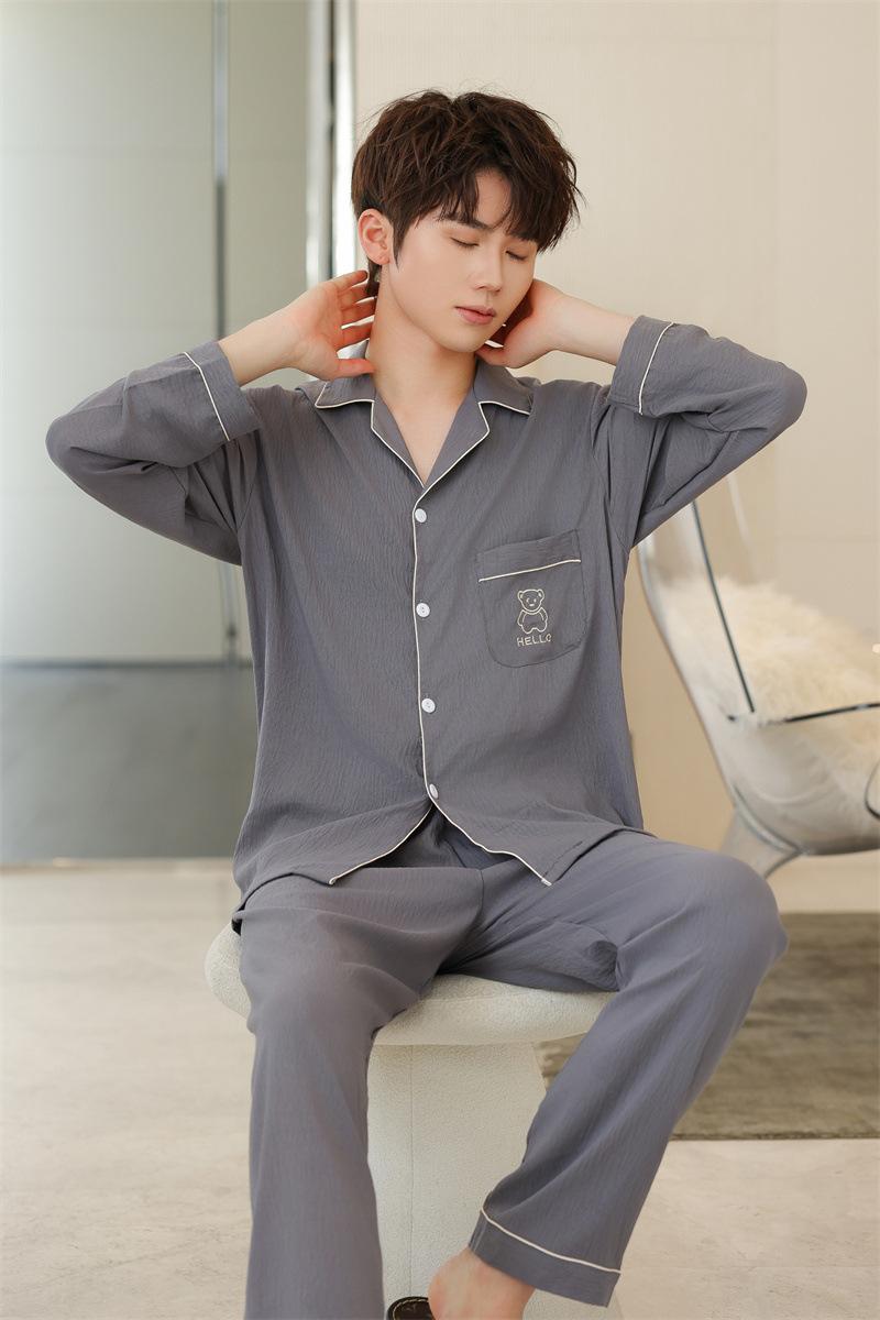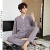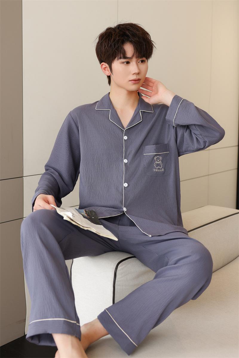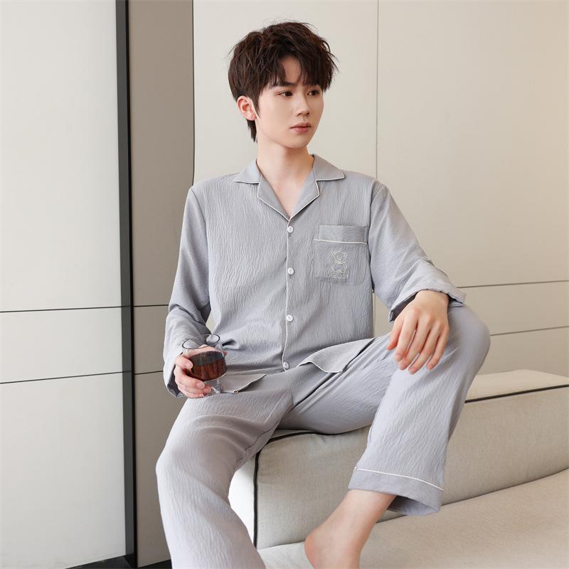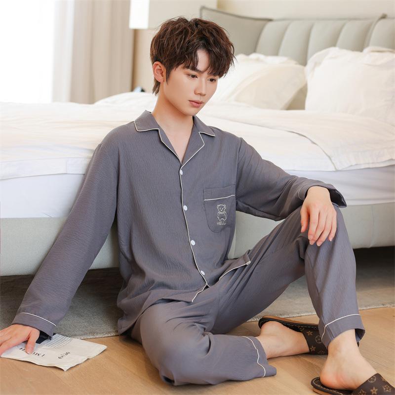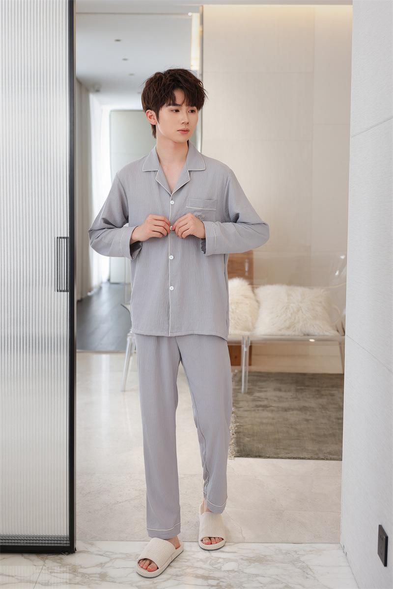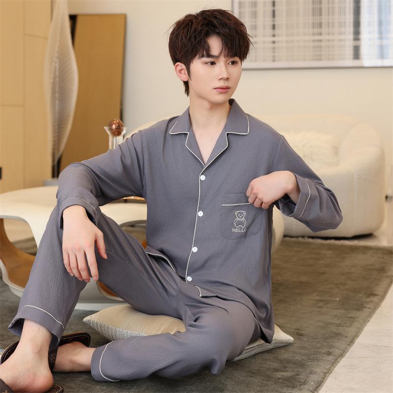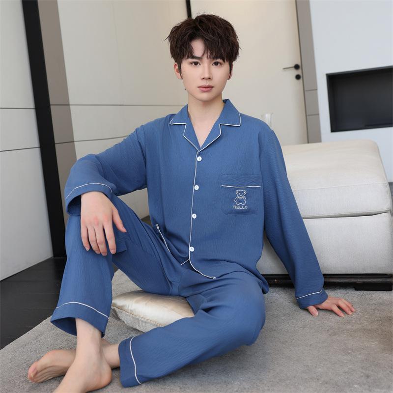 Pijama de Algodón Nube de Talla Extra Grande Traje para Hombre Verano Delgado de Manga Larga Pantalones Cárdigan Solapa Suelto Ropa para el Hogar